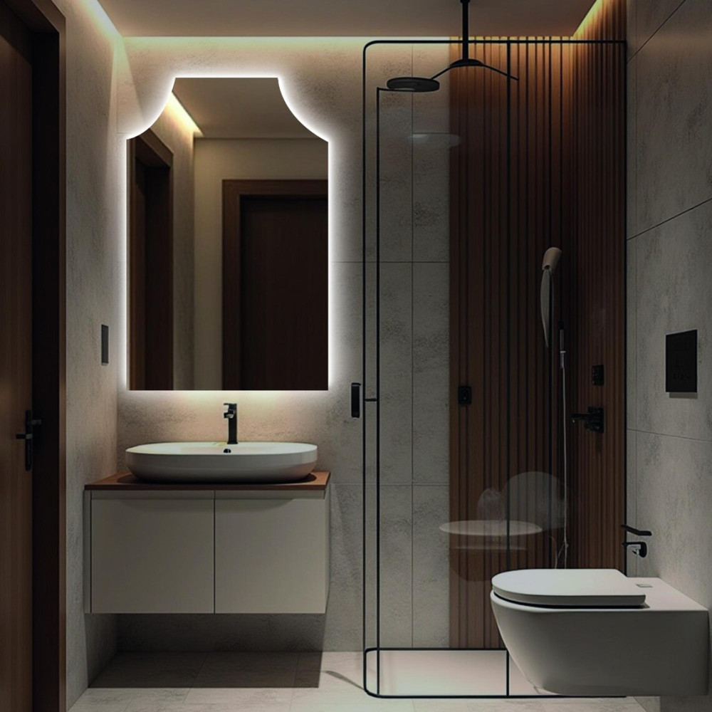 Зеркало с подсветкой в форме прямоугольника с криволинейным верхом Триана 003