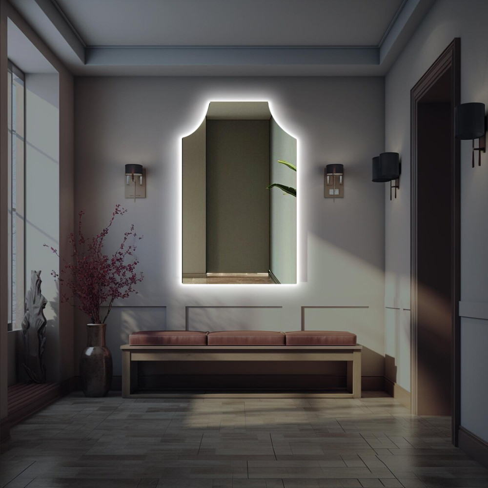 Зеркало Триана 003 — это воплощение изящества. Благородная арочная форма с изысканным фигурным верхом напоминает классические архитектурные своды, а скрытая за корпусом фоновая подсветка превращает его в ультрасовременный элемент декора.