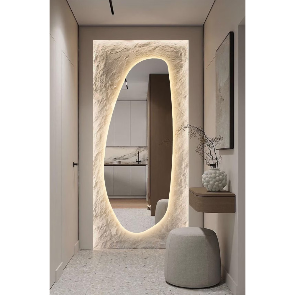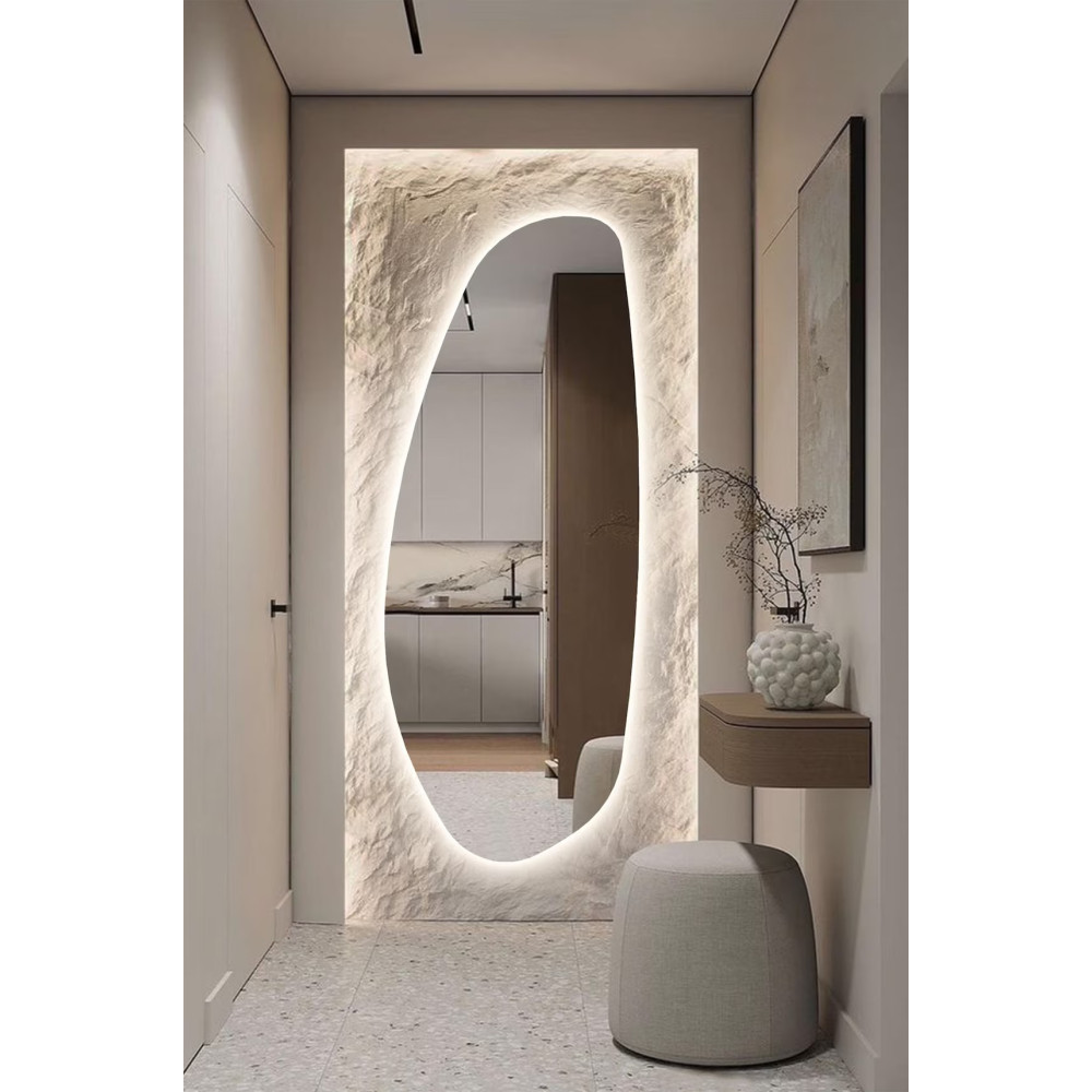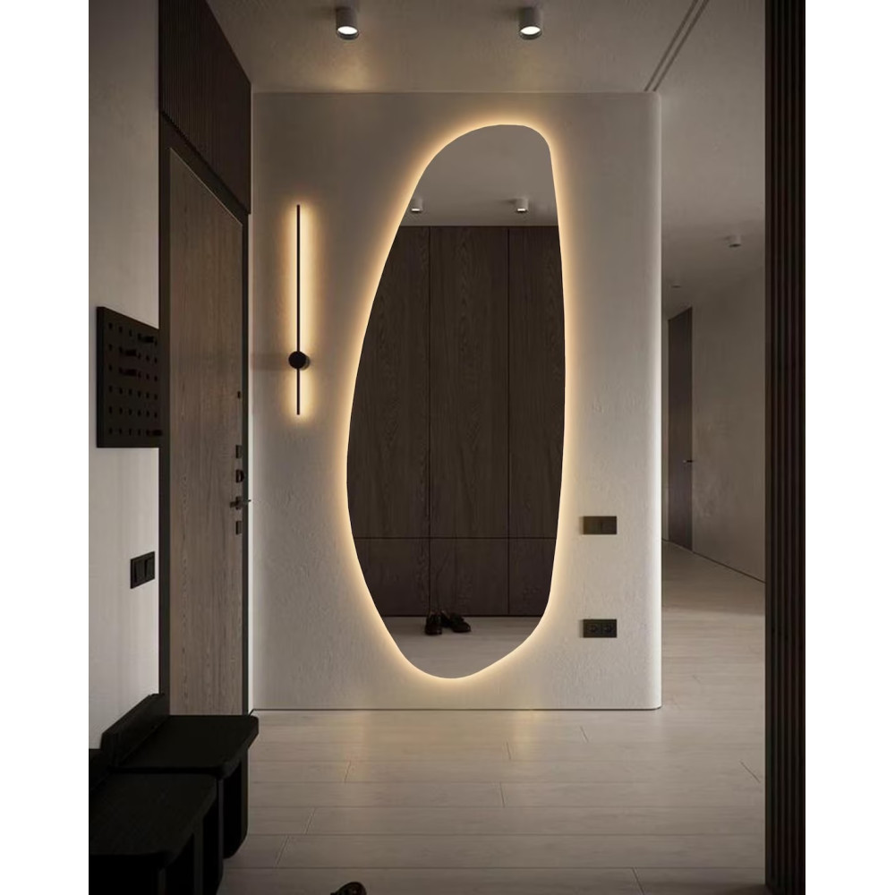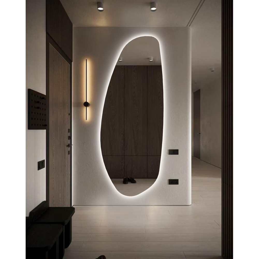 Настенное зеркало нестандартной формы с задней контурной подсветкой Кристалл 005