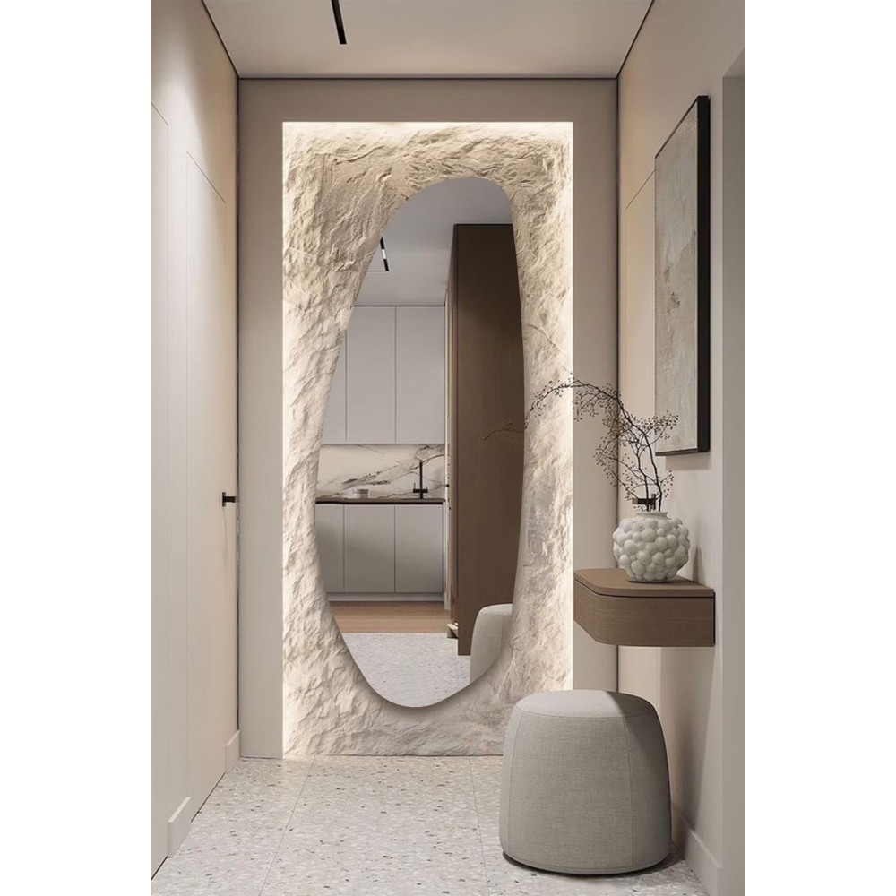 Зеркало Кристалл 005 — стильный акцент современного интерьера. Его необычная форма привлекает внимание и делает пространство более выразительным, а мягкая задняя контурная подсветка создаёт эффект парения зеркала на стене и наполняет комнату уютным рассеянным светом.