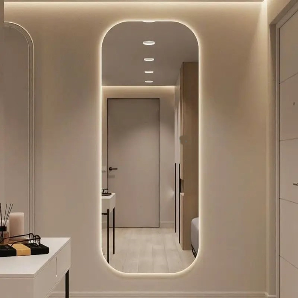 Благодаря качественному зеркальному стеклу с кристальной прозрачностью, зеркало смотрится изысканно и визуально расширяет пространство. Подсветка обеспечивает равномерное освещение сзади зеркала— удобно для ухода за собой, примерки одежды или фотосъёмки.