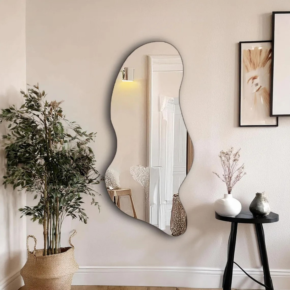 Асимметричное большое настенное зеркало без рамы и без подсветки в полный рост Фэйбл