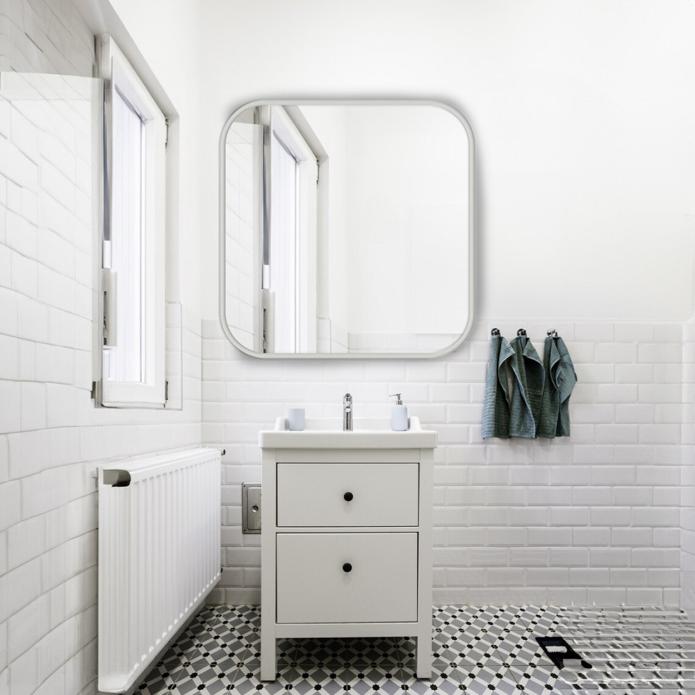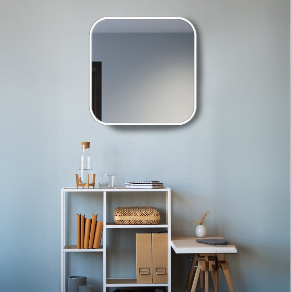 Зеркало DR005 — квадратное зеркало в белой раме с закруглёнными углами