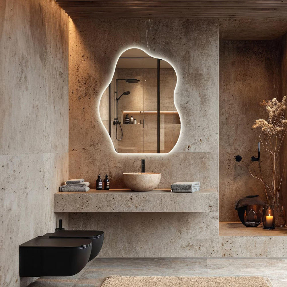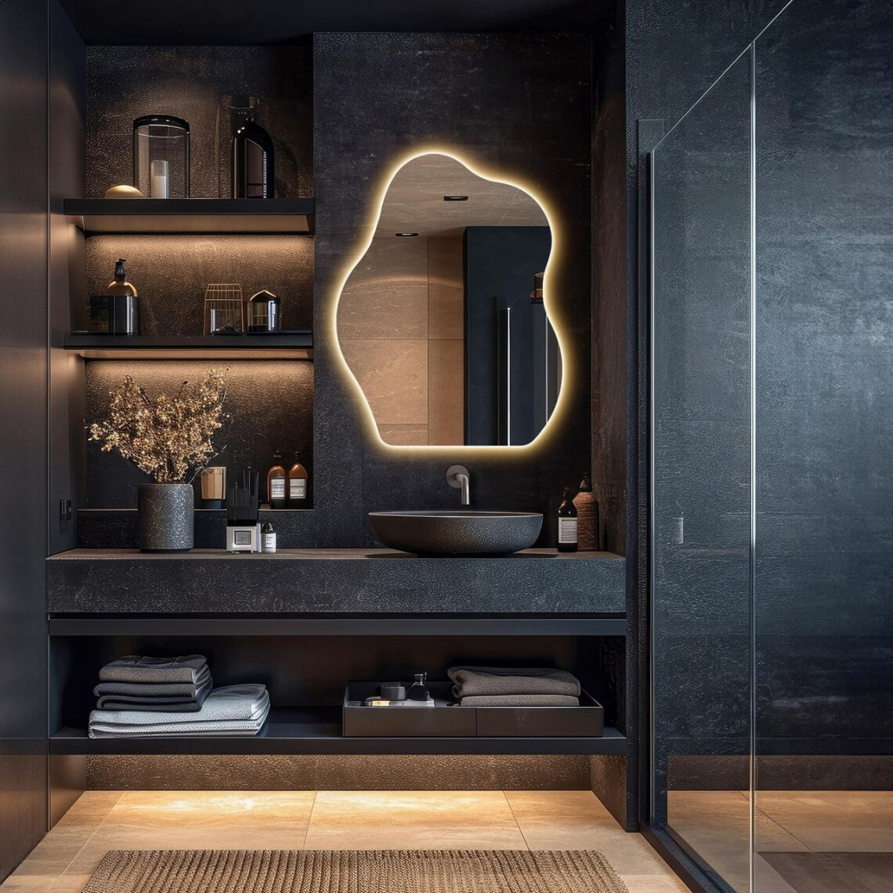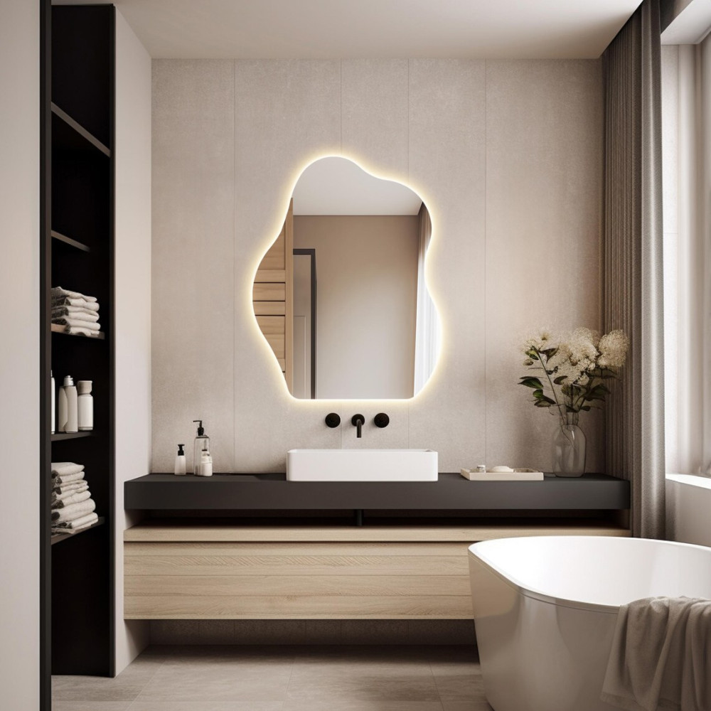 Зеркало нестандартной формы с задней фоновой подсветкой - это уникальное и стильное решение для вашего интерьера.