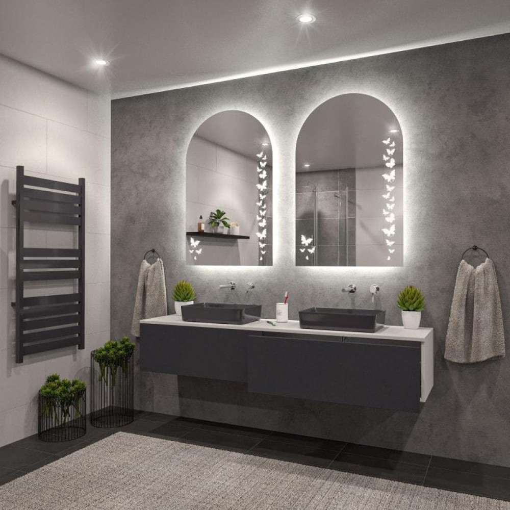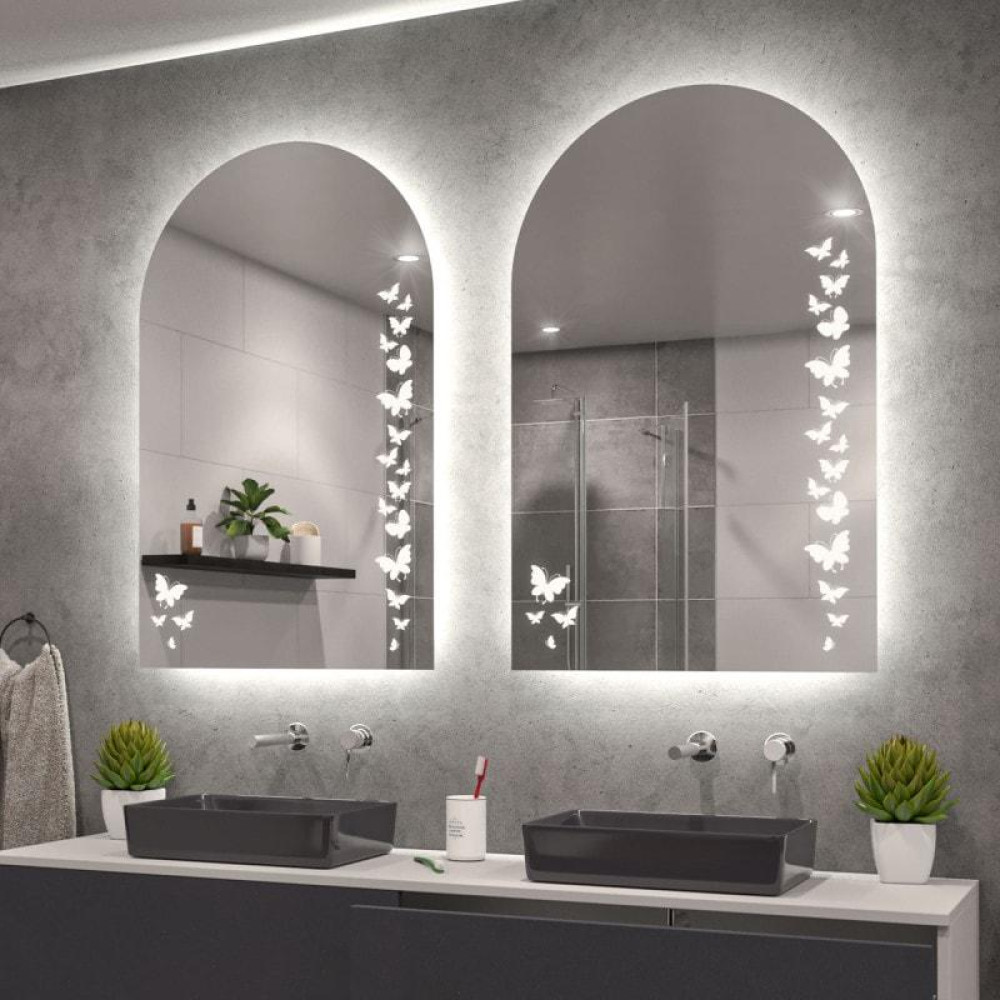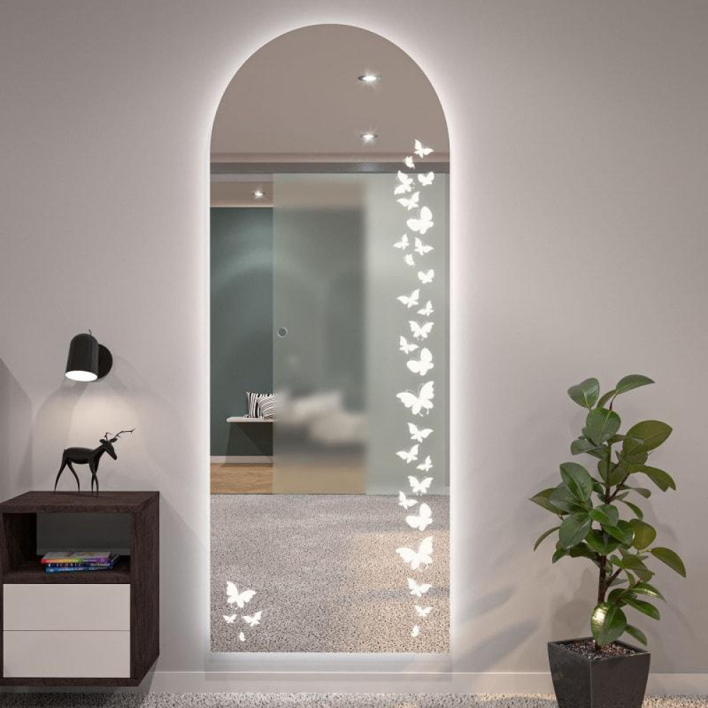 Арочное зеркало со светодиодным пескоструйным рисунком «Бабочки»