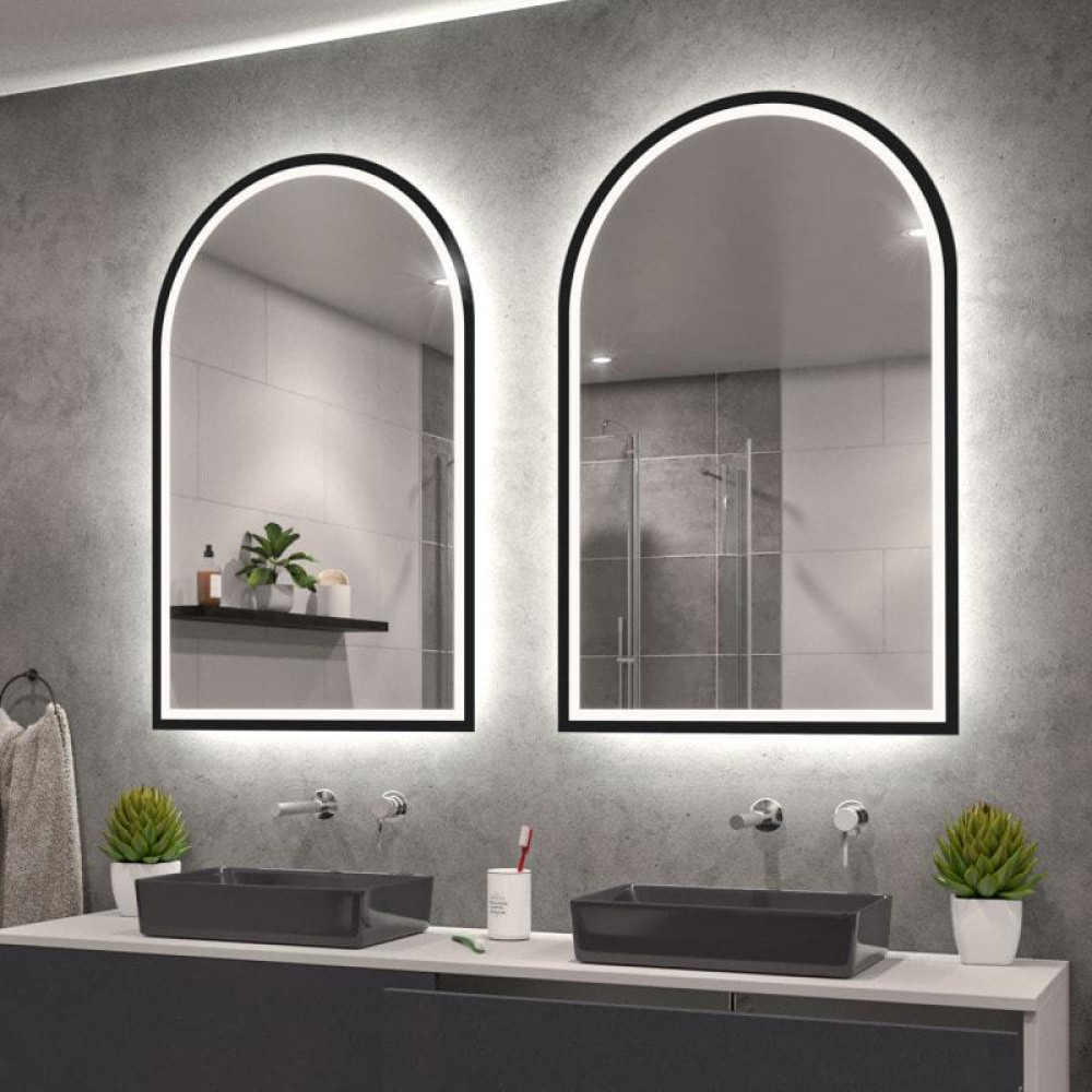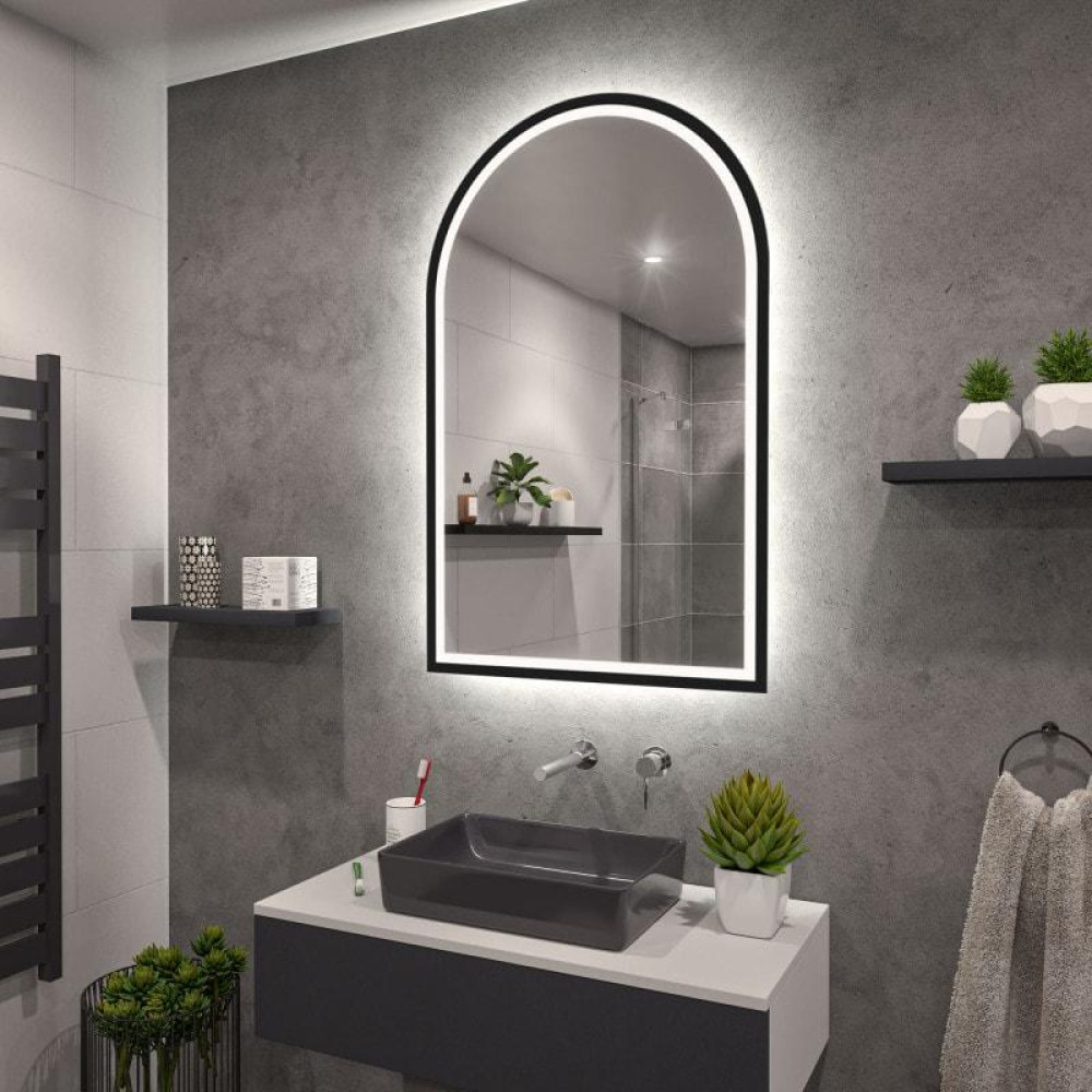 Зеркало-арка в чёрной раме с фронтальной и задней фоновой подсветкой Астерия 008