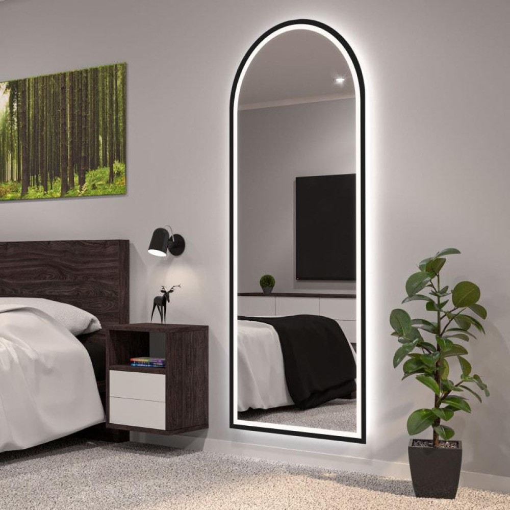 Настенное и напольное большое арочное зеркало в полный рост в раме с фронтальной и задней фоновой подсветкой Астерия 009