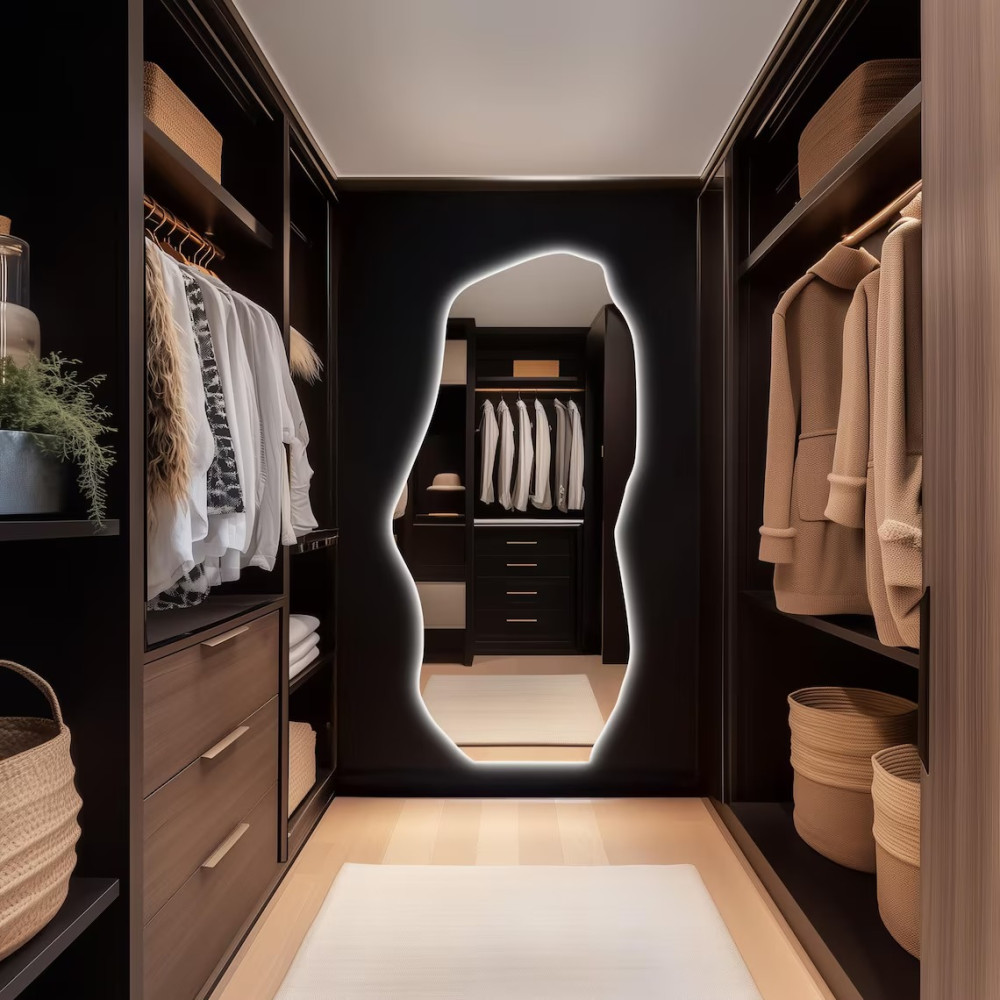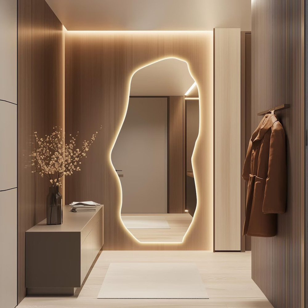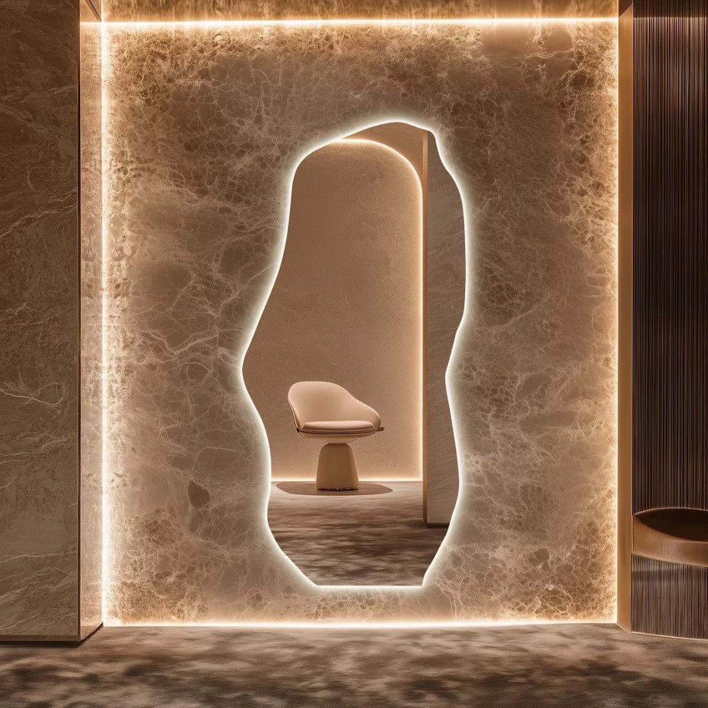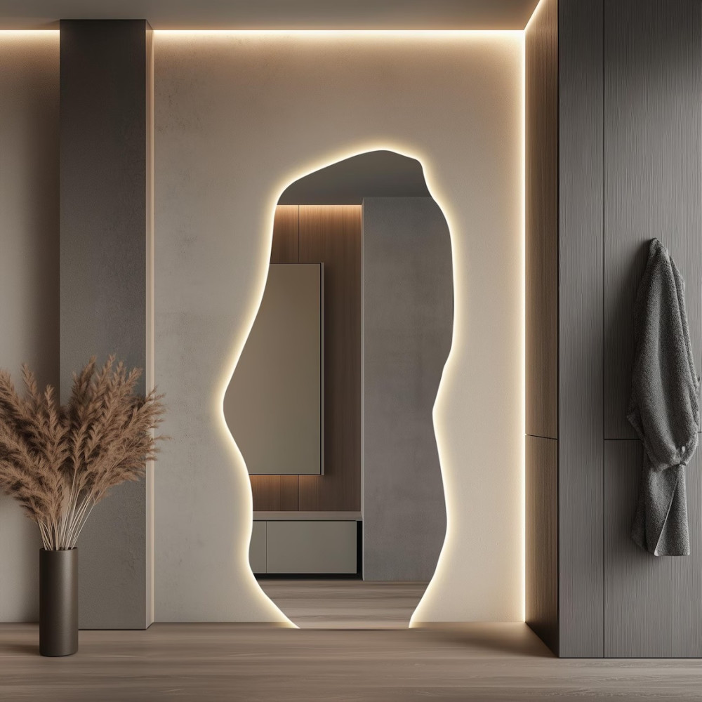 Настенное и напольное зеркало неправильной формы в полный рост с задней контурной подсветкой E001
