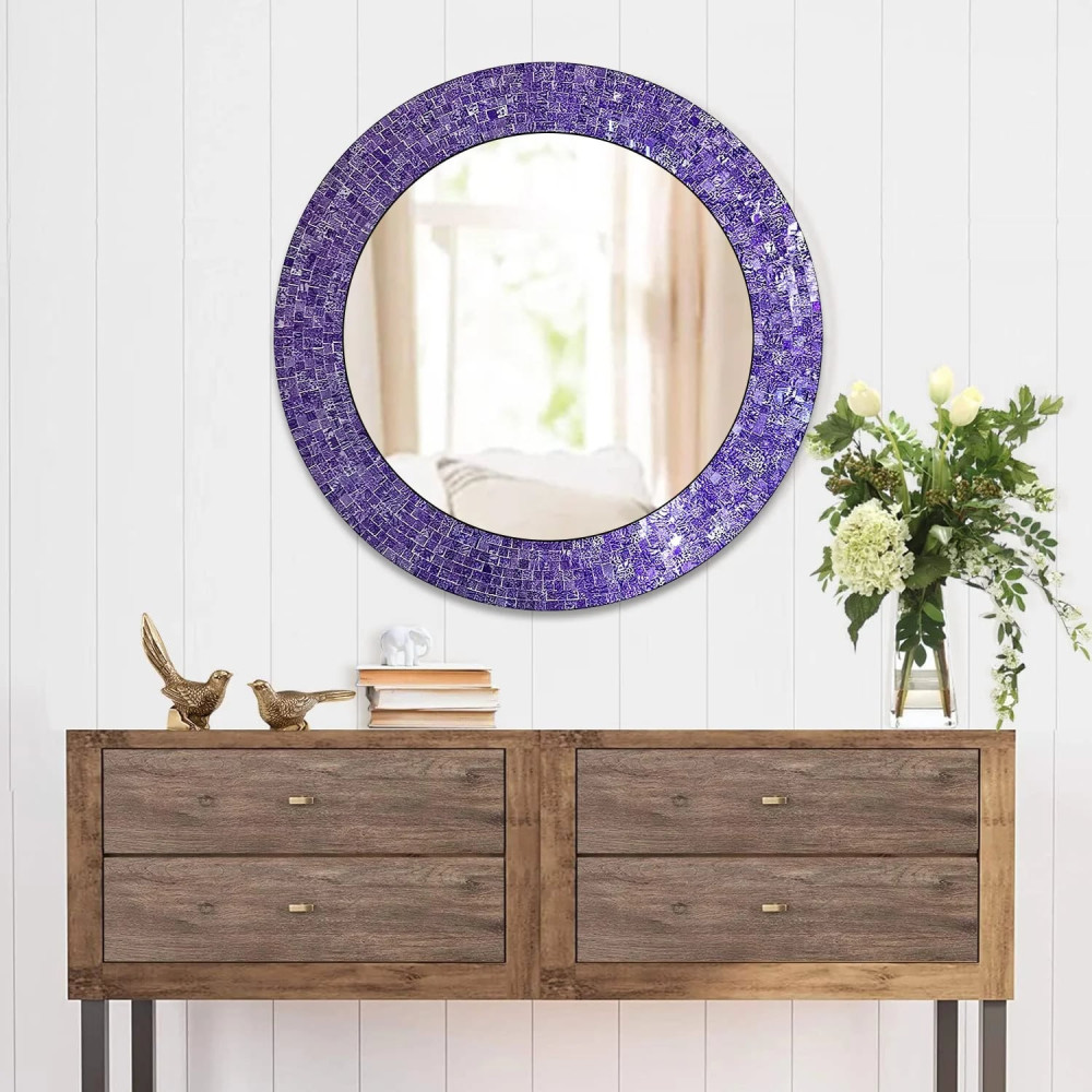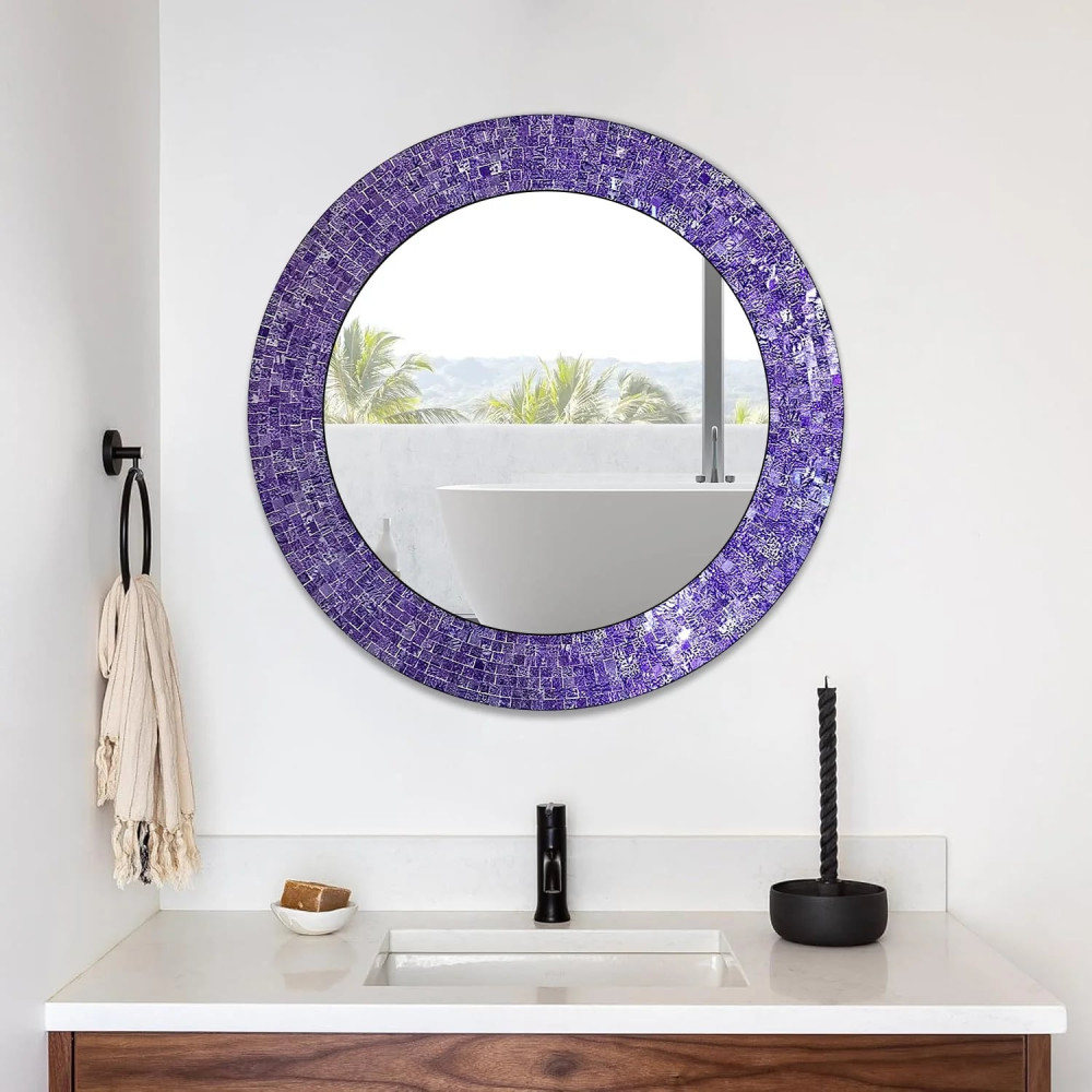 Изысканное зеркало с круглым зеркальным полотном в раме из стеклянной мозаики — стильный акцент для современного интерьера. Мозаичная отделка из стекла красиво переливается при освещении, подчёркивая эксклюзивность и утончённый вкус владельца.