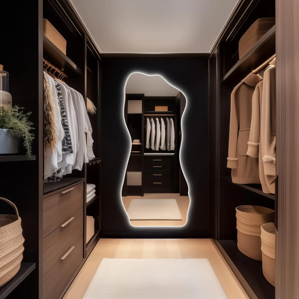 Модель можно установить как настенным, так и напольным способом, что делает её универсальной для любых помещений — спальни, гардеробной, прихожей, гостиной, бутика или салона красоты.