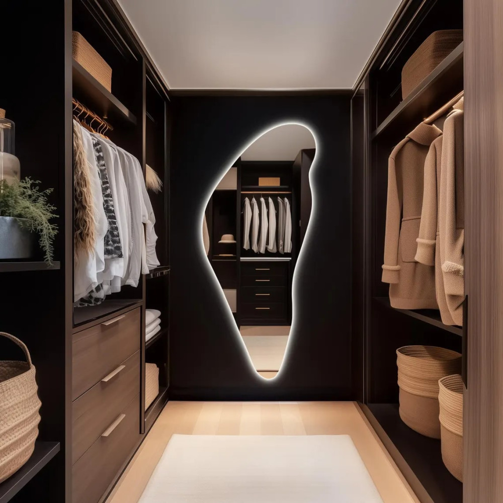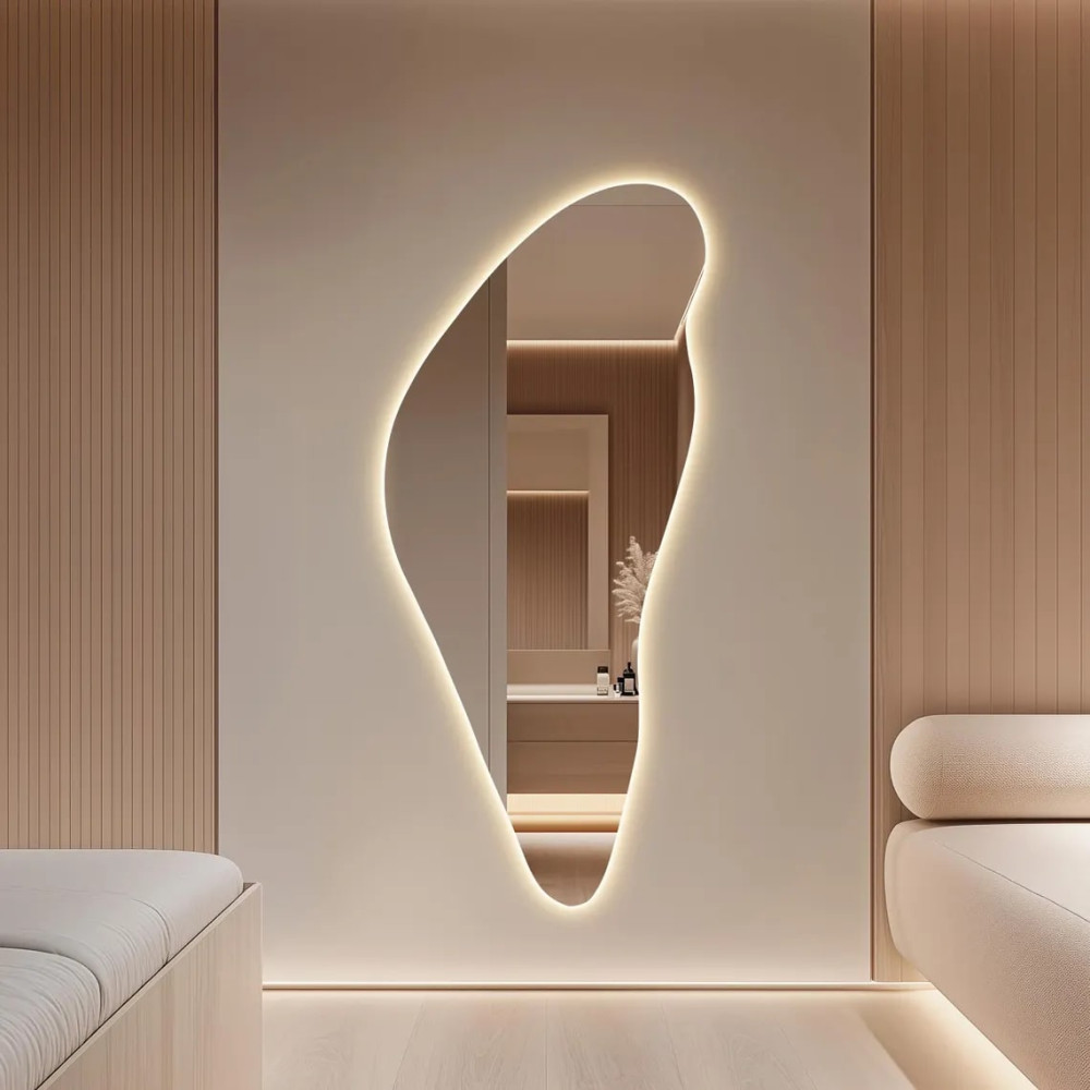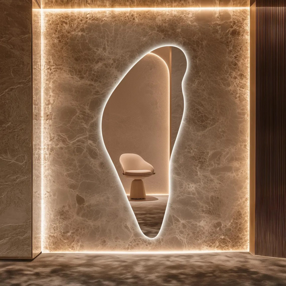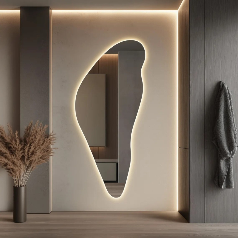 Зеркало большое неправильной формы в полный рост с задней парящей подсветкой E033