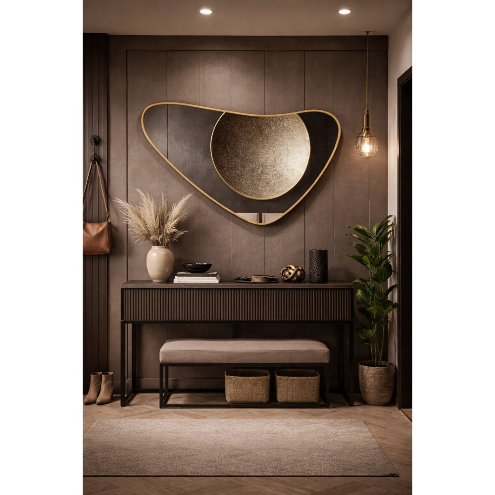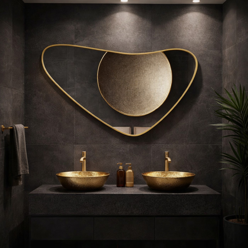 Настенное дизайнерское зеркало неправильной формы в золотой раме Кадера