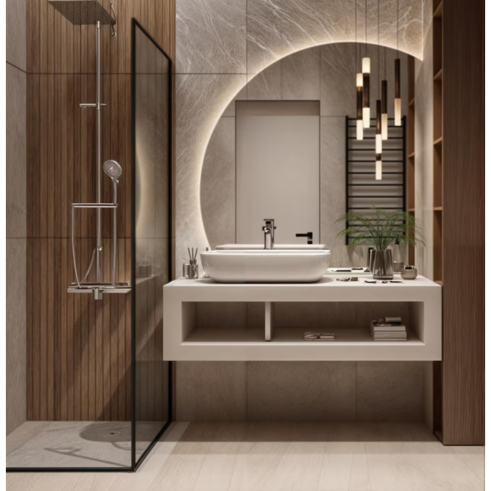 Для профессионального макияжа рекомендуем использовать зеркала с лампочками или зеркала с фронтальными пескоструйными световыми полосами с усиленной яркостью, нейтральным дневным светом и закрытым свечением(сзади зеркала свет не падает на стену).