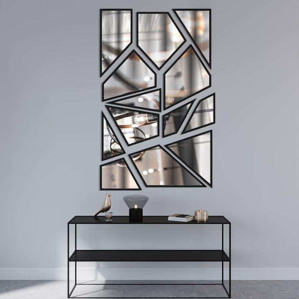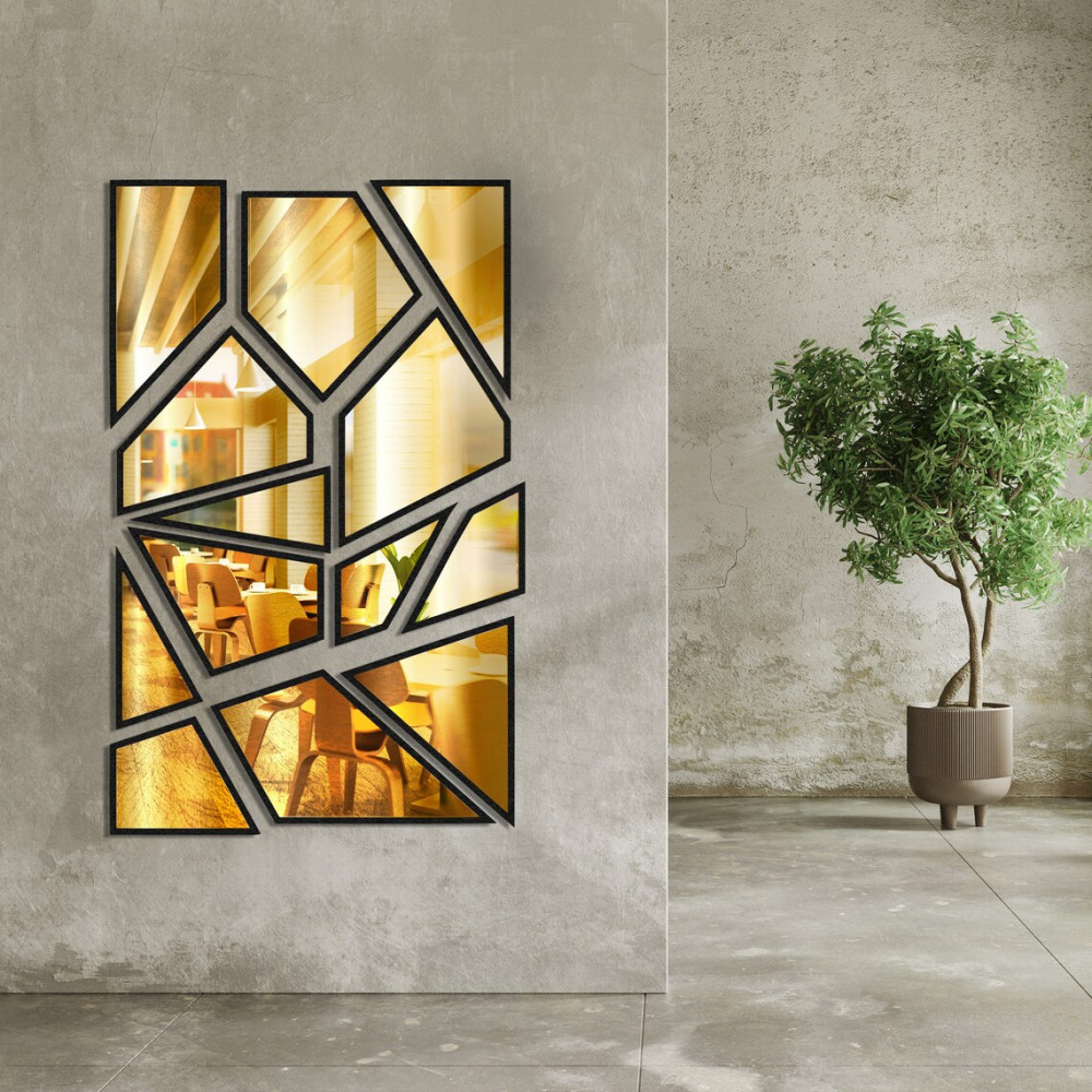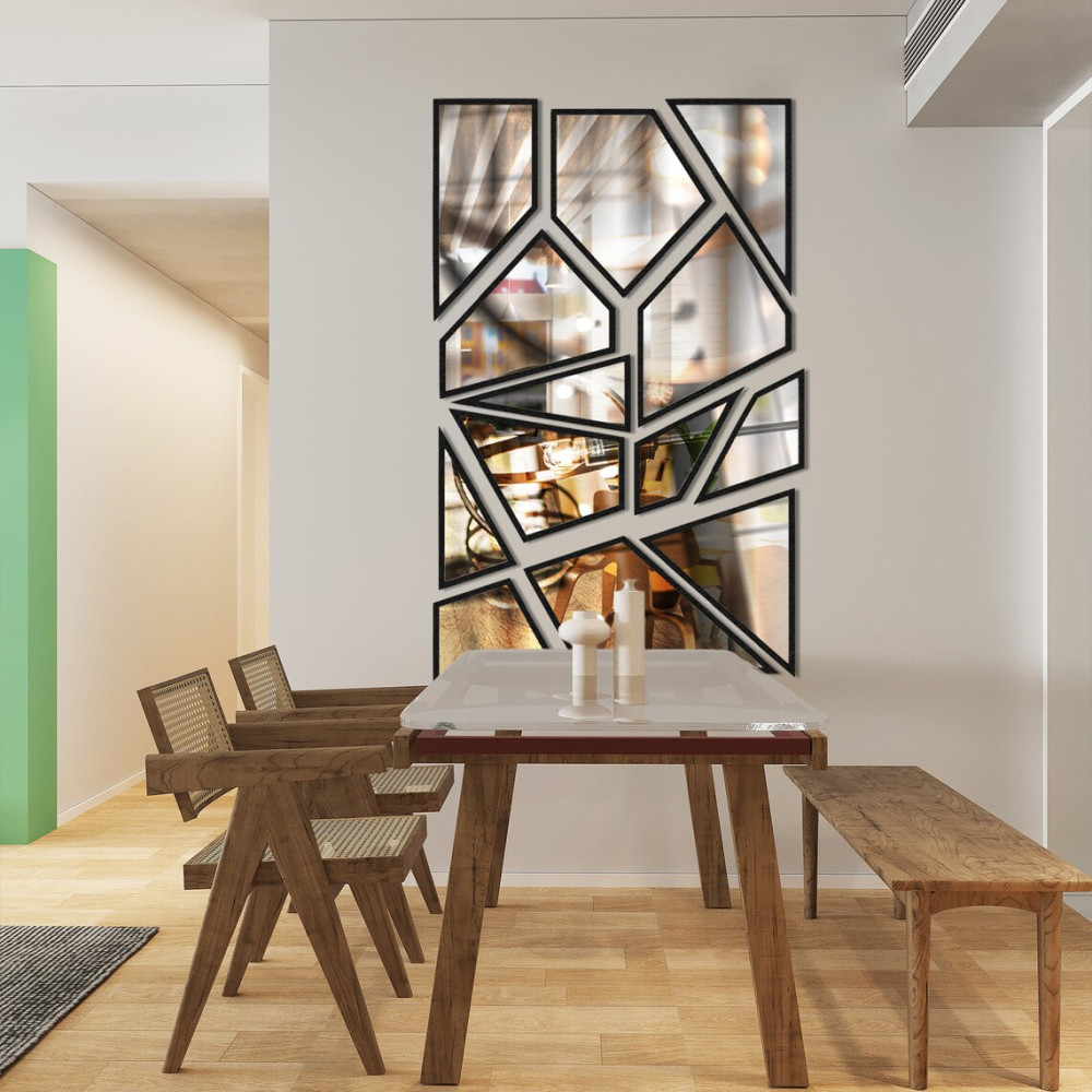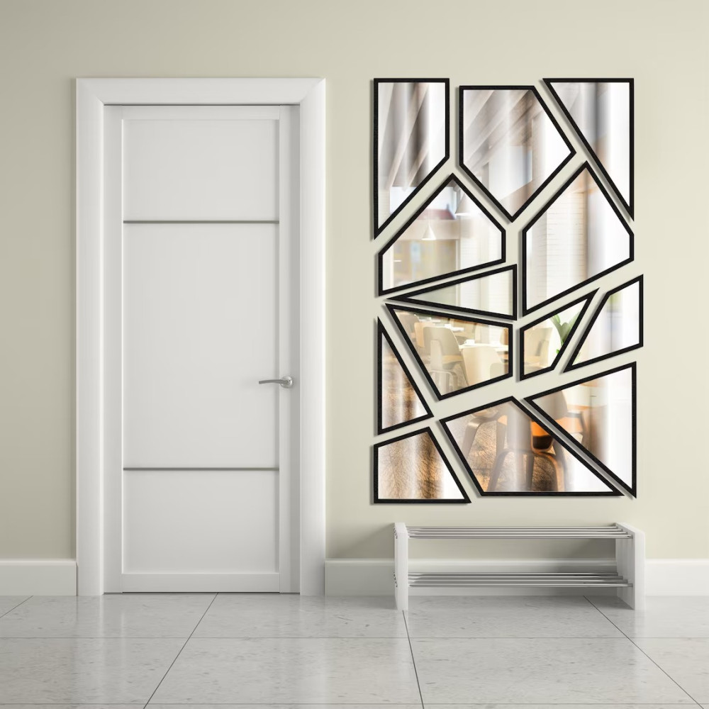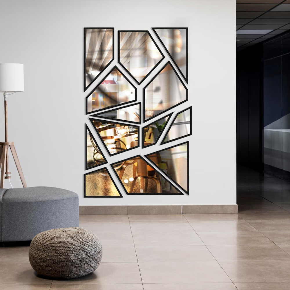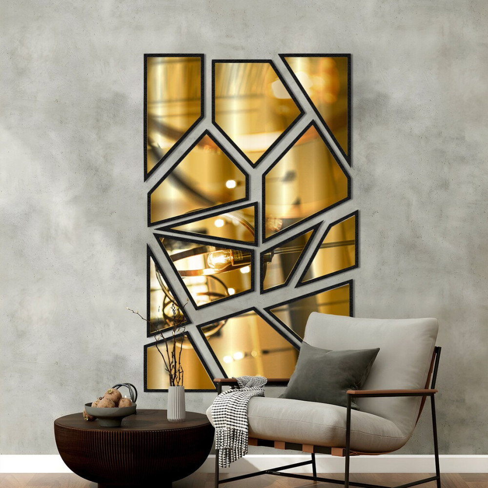 Зеркальное панно в чёрной раме из МДФ «Коппер» — это дизайнерская композиция, собранная из множества зеркальных элементов. Разнообразие граней и отражений создаёт визуальное движение и делает панно ярким акцентом в любом помещении.