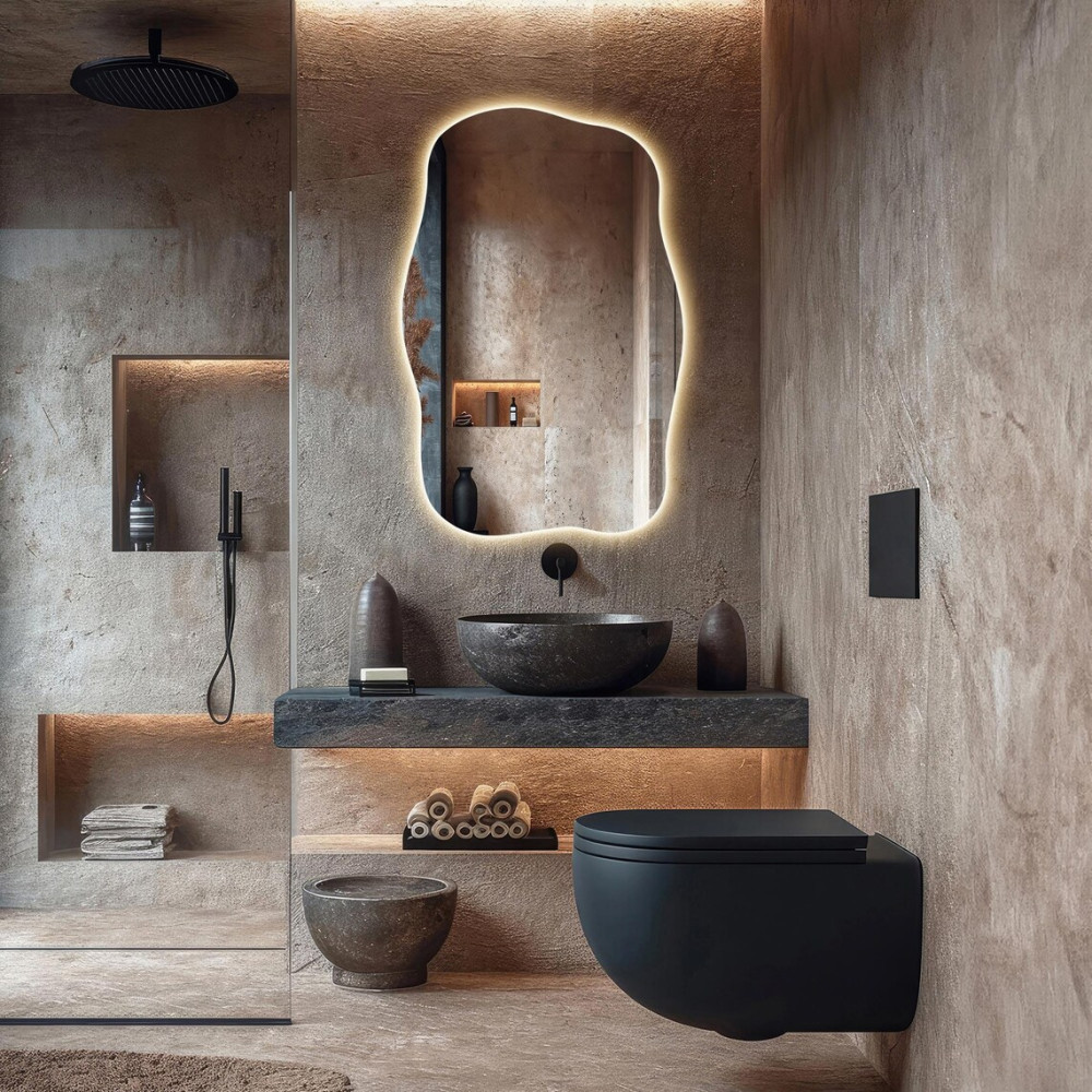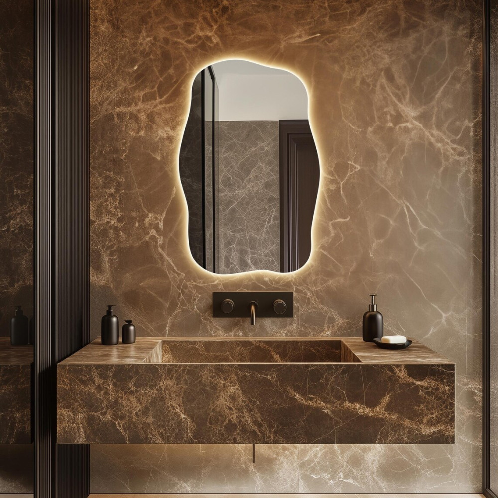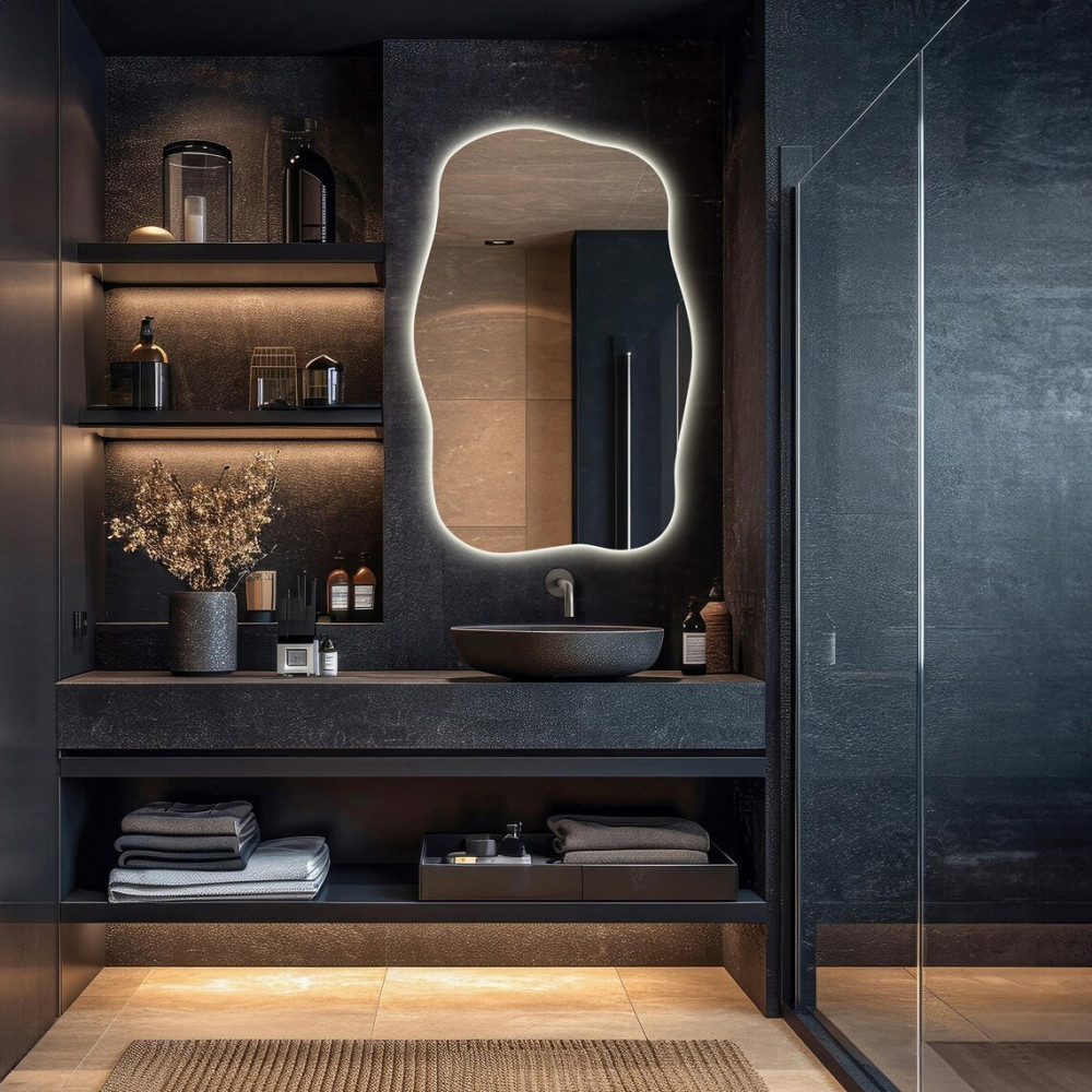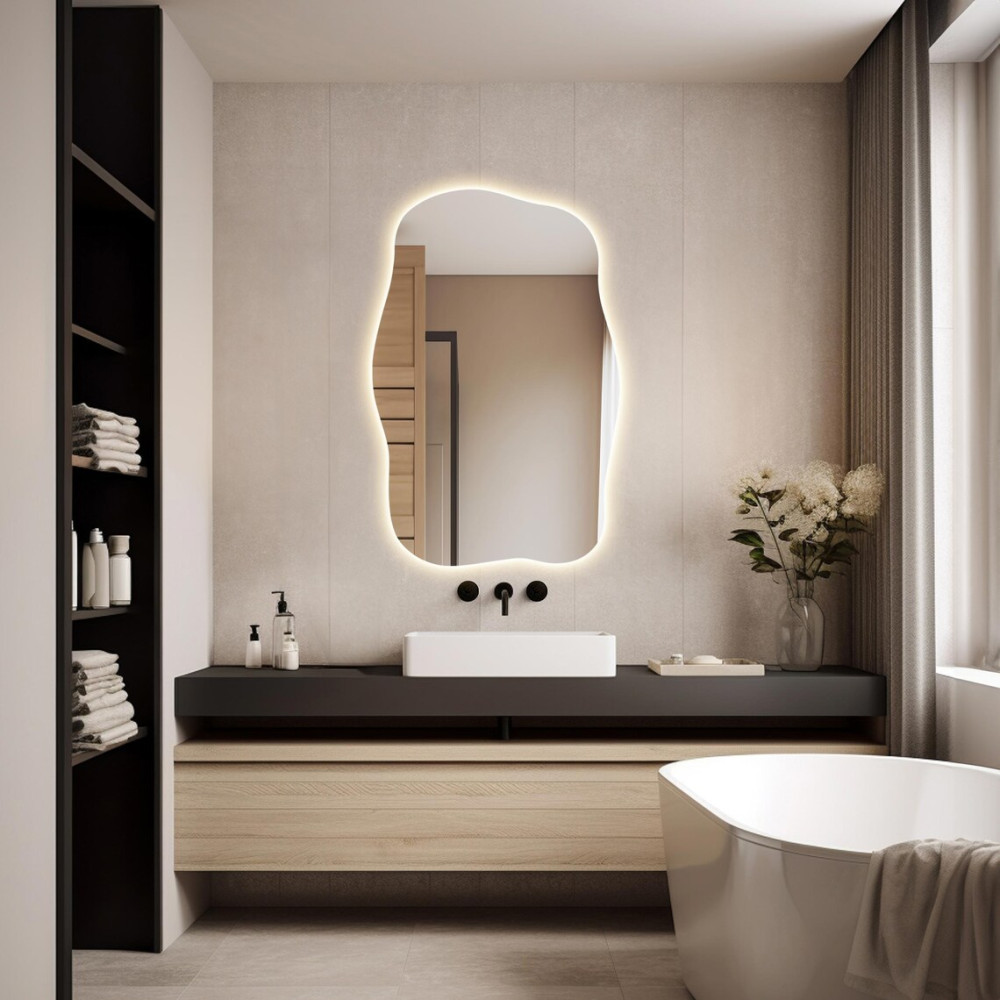 Зеркало E099 — это современный интерьерный акцент, созданный для тех, кто ценит нестандартные формы и атмосферный свет. Его неправильный асимметричный силуэт придаёт помещению динамику, лёгкость и художественную выразительность, превращая зеркало в полноценный арт-объект.