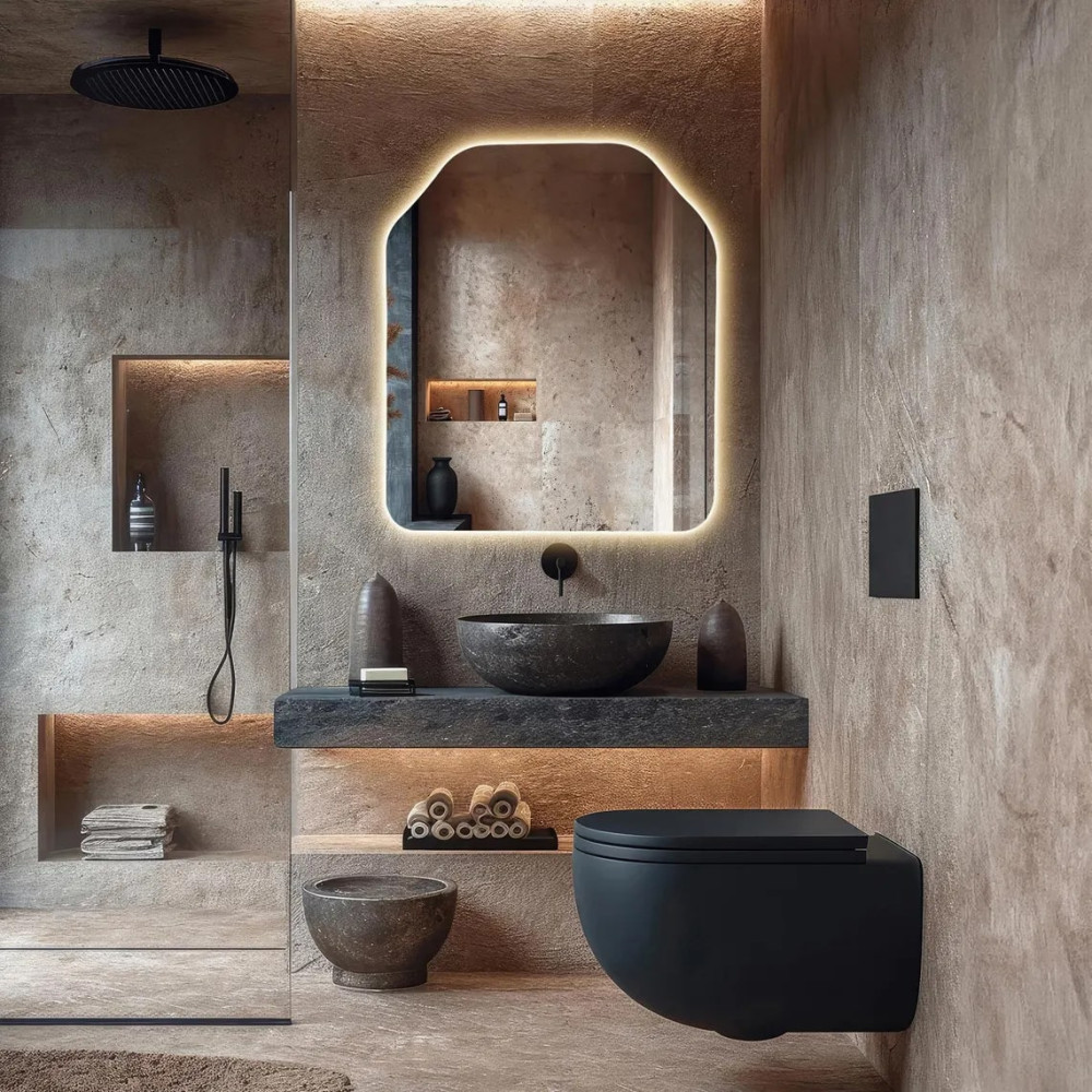 Благодаря световому ореолу зеркало E076 добавляет пространству глубину, уют и современную архитектурность. Такое решение идеально подходит для акцентных стен, вечернего освещения, расслабляющей атмосферы и фотогеничных зон.