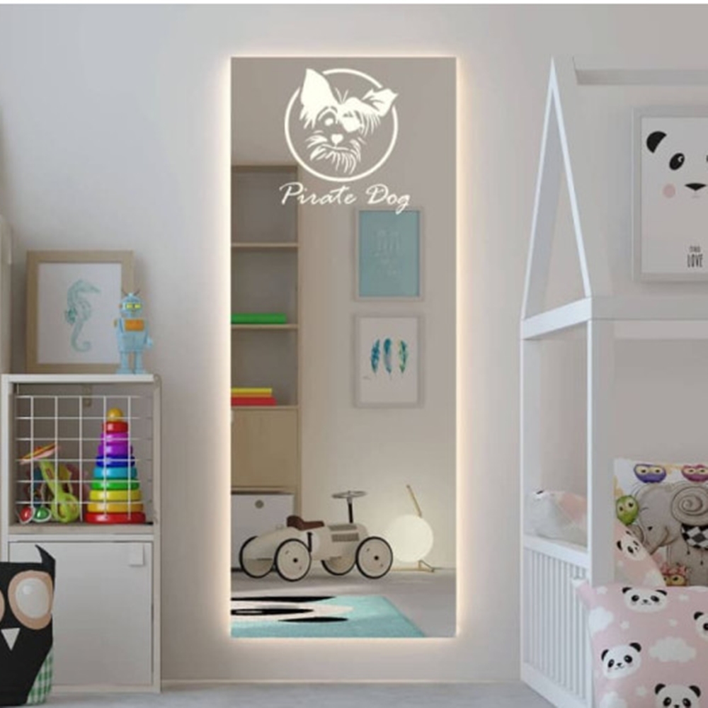 Настенное и напольное зеркало в полный рост с подсветкой, модель «Собачка пират Йоркшир».