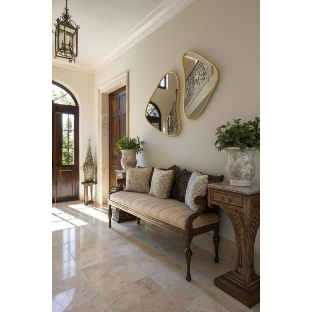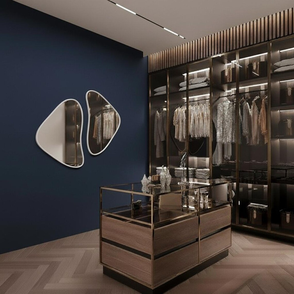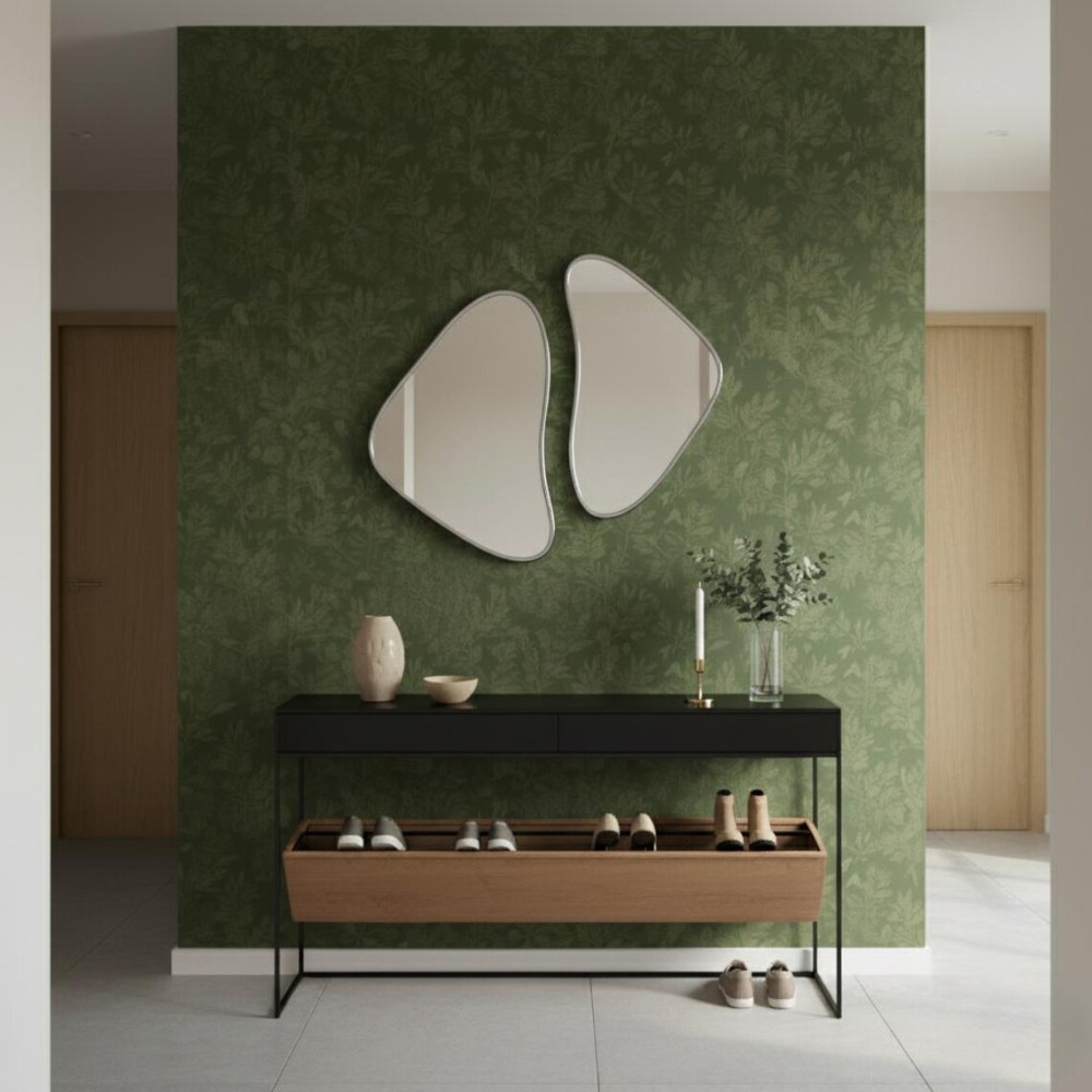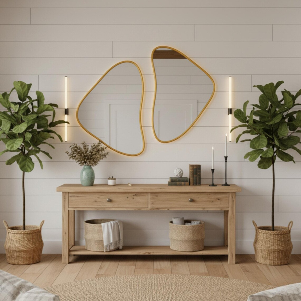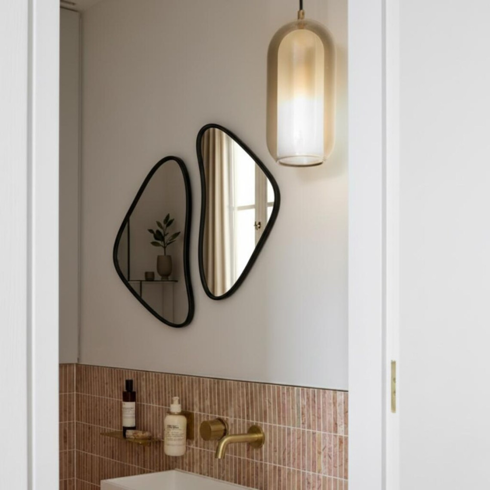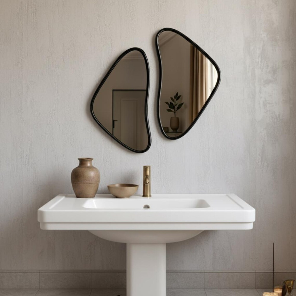 Благодаря нестандартной геометрии зеркало легко становится центральным элементом композиции, добавляя интерьеру динамику и лёгкую асимметрию. МДФ-рама подчёркивает форму, обеспечивает аккуратное обрамление и повышенную надёжность.