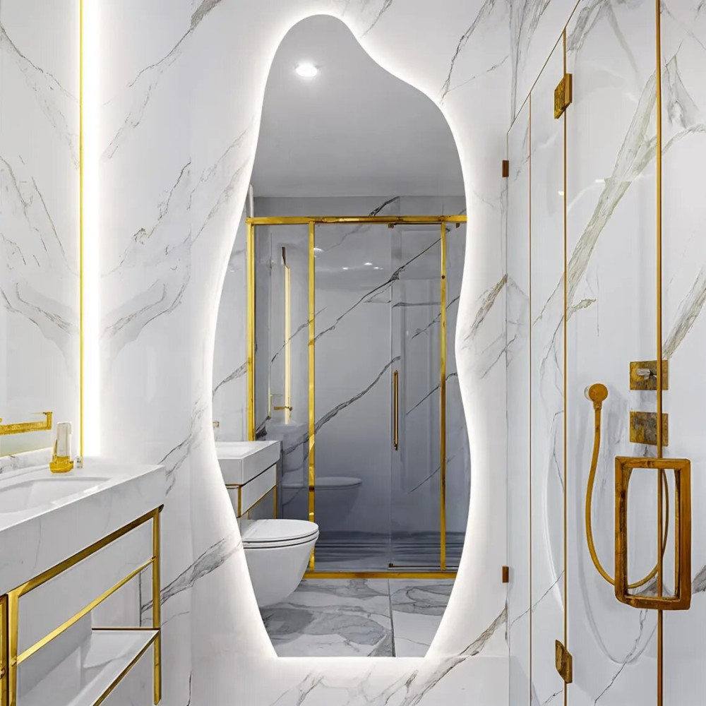 Настенное зеркало неправильной формы в полный рост с контурной подсветкой для интеграции с консолями, тумбами или полками Ориджи