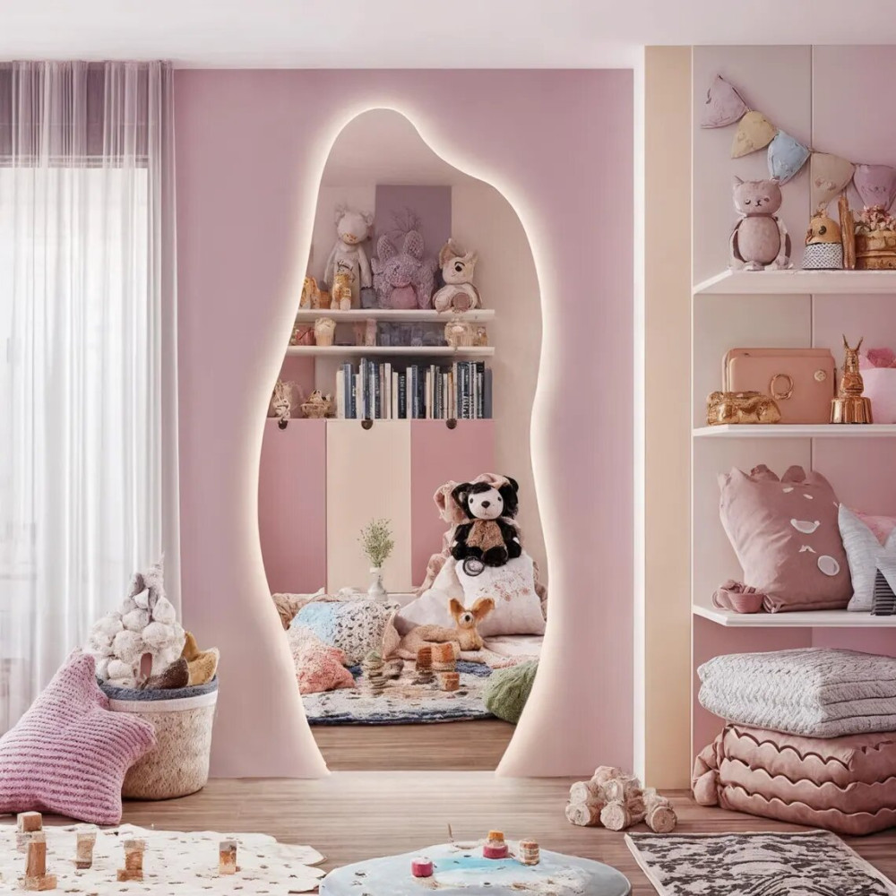 Обзор в полный рост: Несмотря на фантазийную форму, зеркало сохраняет свою главную функцию — оно позволяет видеть себя в полный рост, обеспечивая правильную цветопередачу и отсутствие искажений.