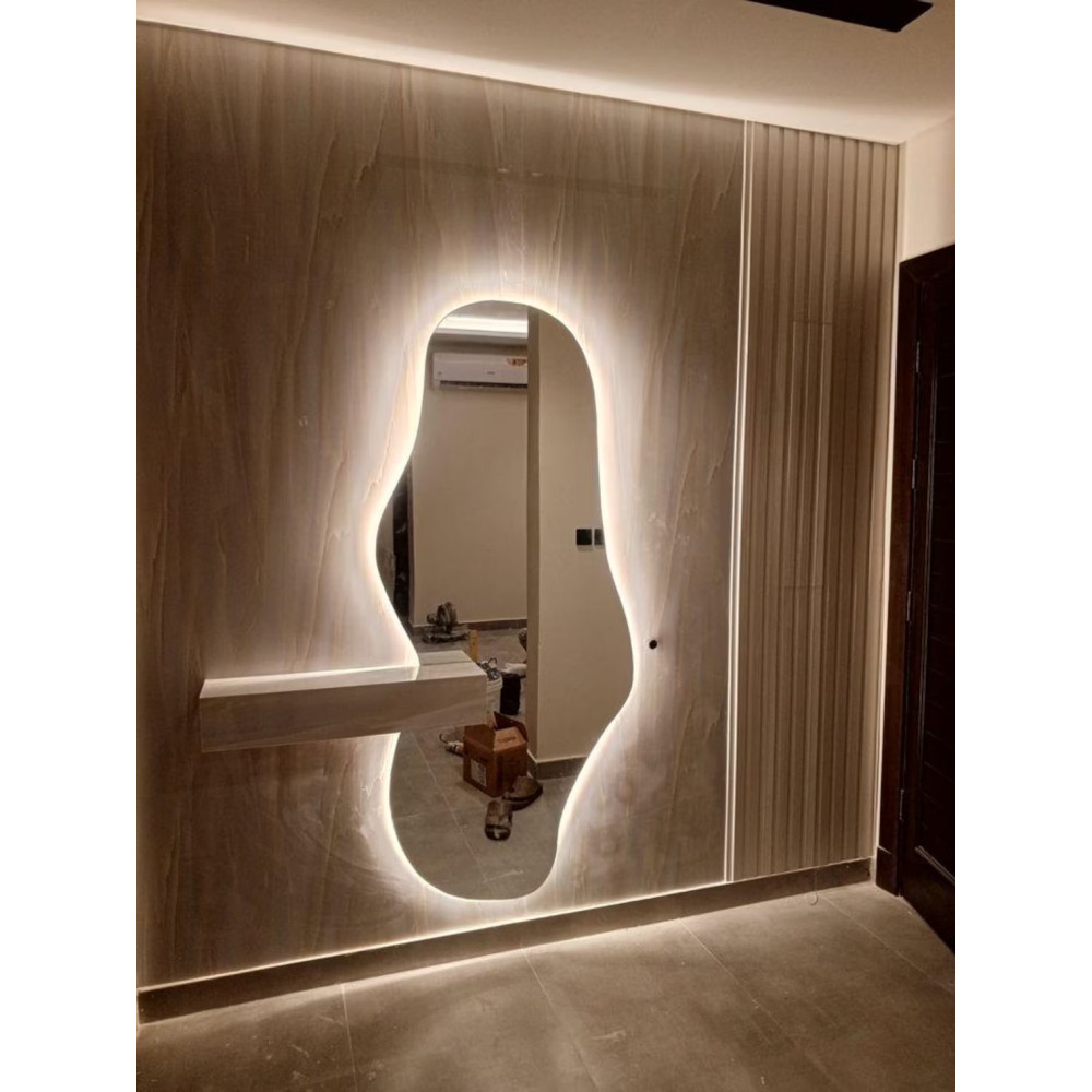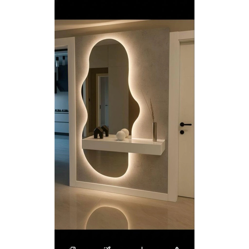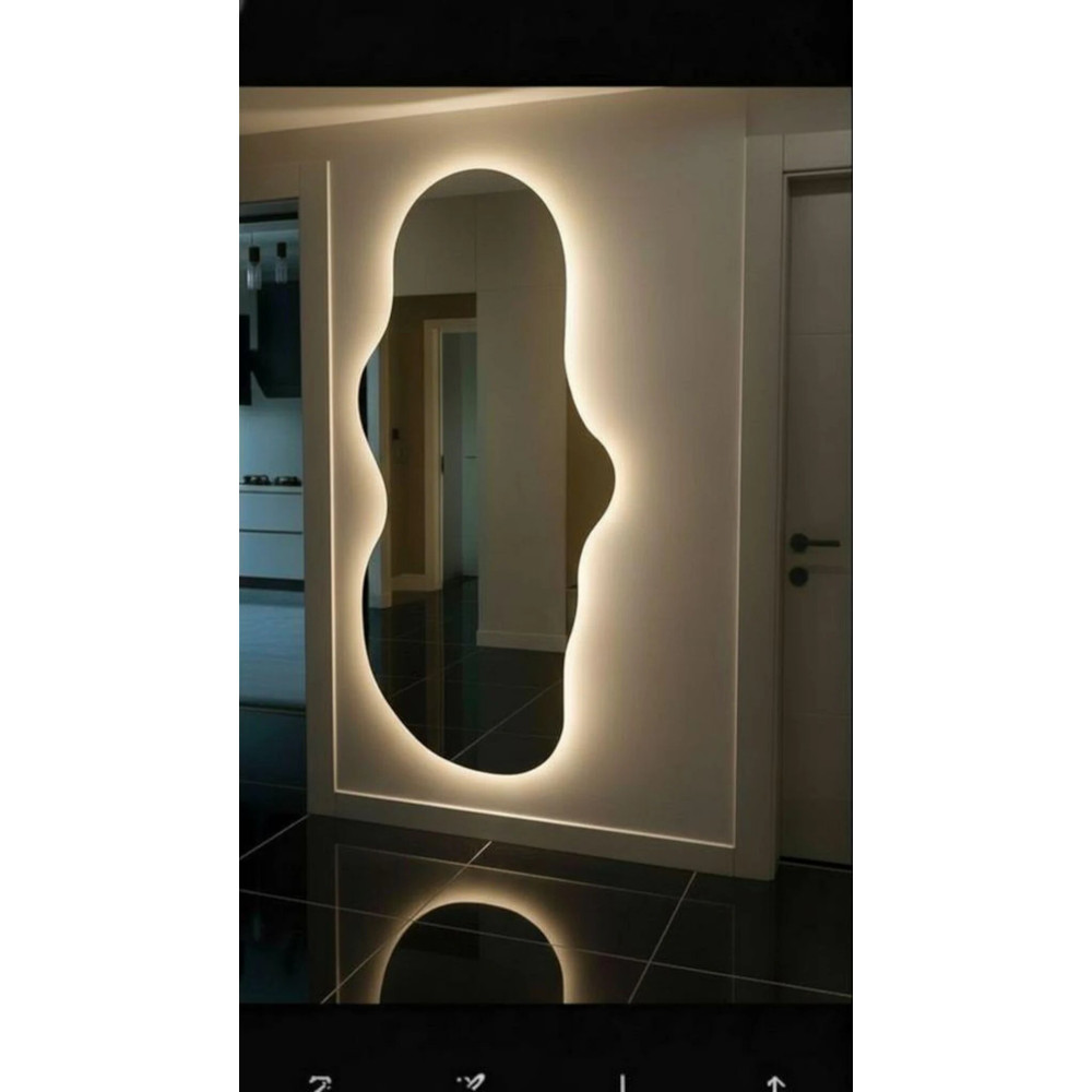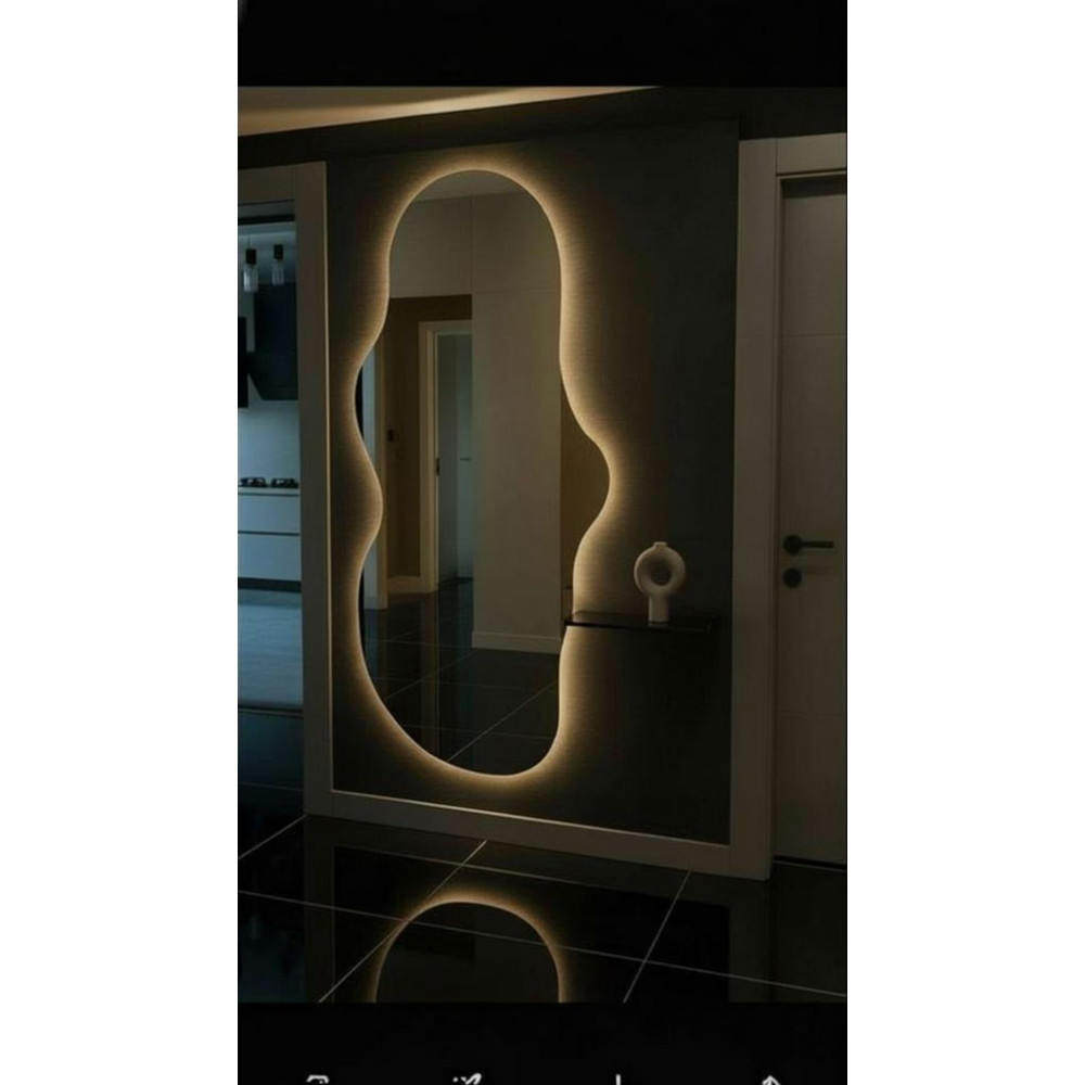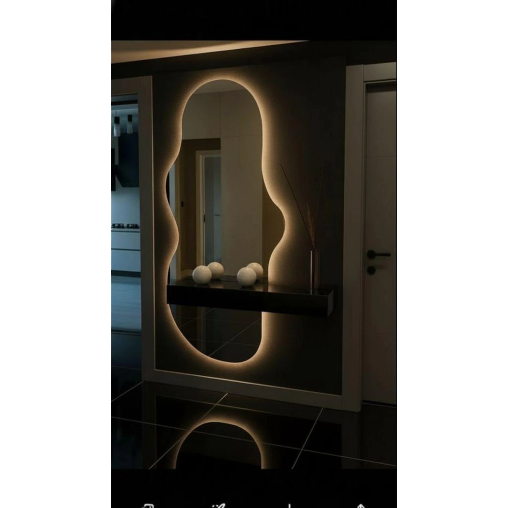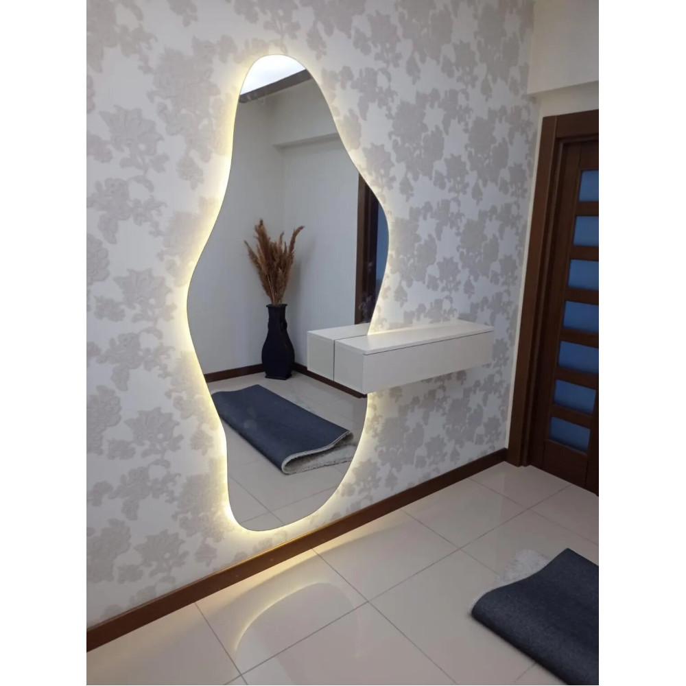 Настенное зеркало в полный рост с задней фоновой подсветкой под тумбу, консоль, полку Лайн 002