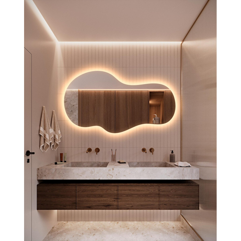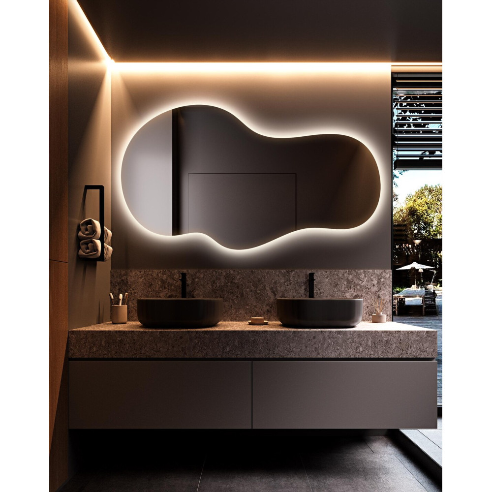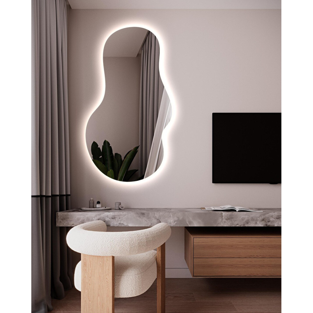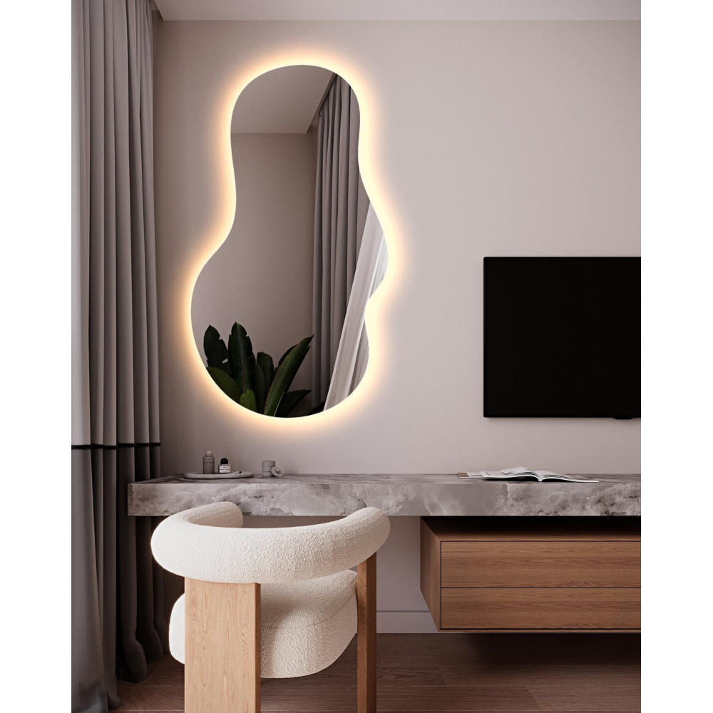 Зеркало настенное бесформенное с фоновой интерьерной подсветкой E010
