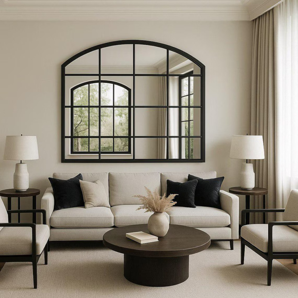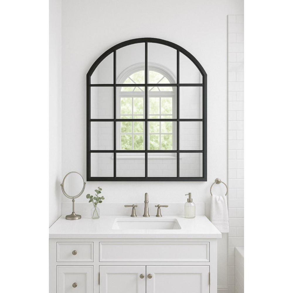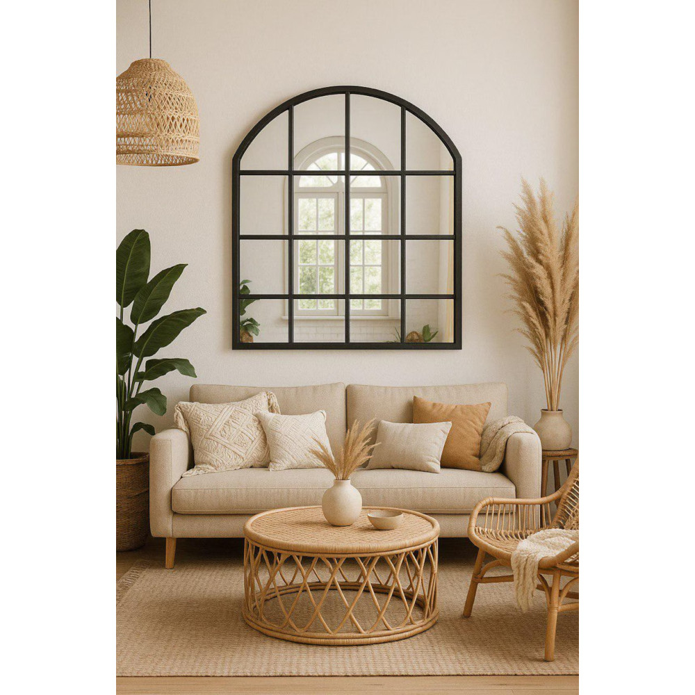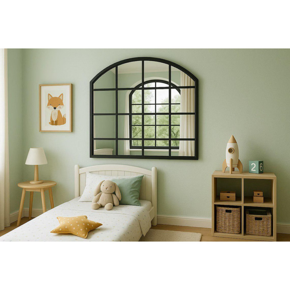 Настенное арочное зеркало в виде окна в чёрной раме Маркус