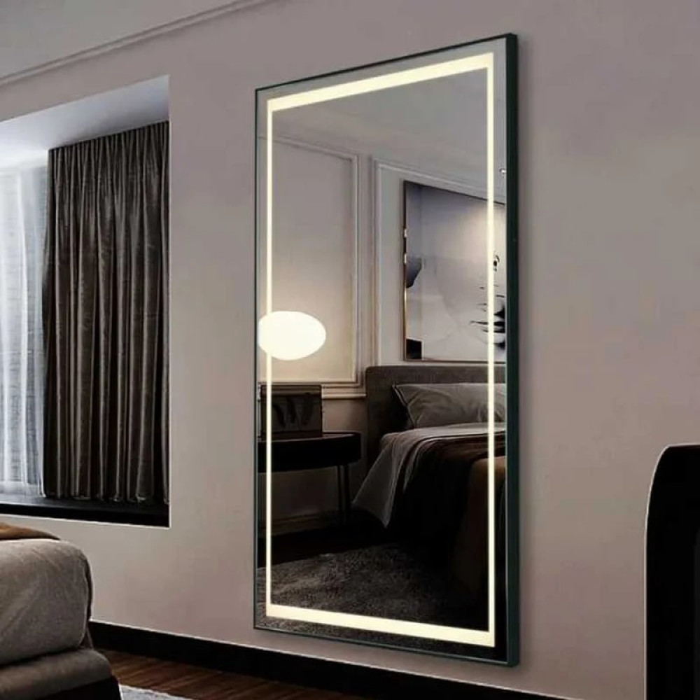 Большое настенное и напольное зеркало в раме из МДФ с подсветкой в полный рост «Эмили 002»