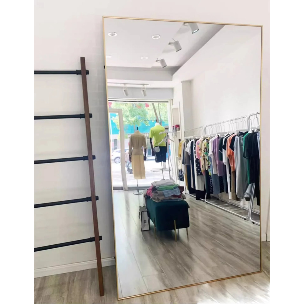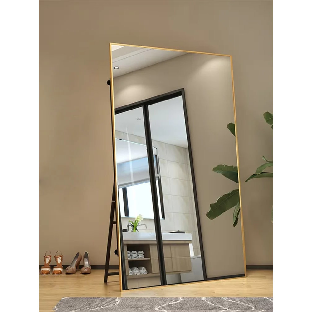 Напольное зеркало «Эмилия» — изысканный акцент для современного интерьера. Большое широкое зеркало в полный рост помогает видеть образ целиком, а благородная золотая металлическая рама придаёт интерьеру роскошь и элегантность. Устойчивая ножка-подставка делает установку лёгкой и удобной — зеркало не требует крепления к стене и может быть размещено в любом месте.