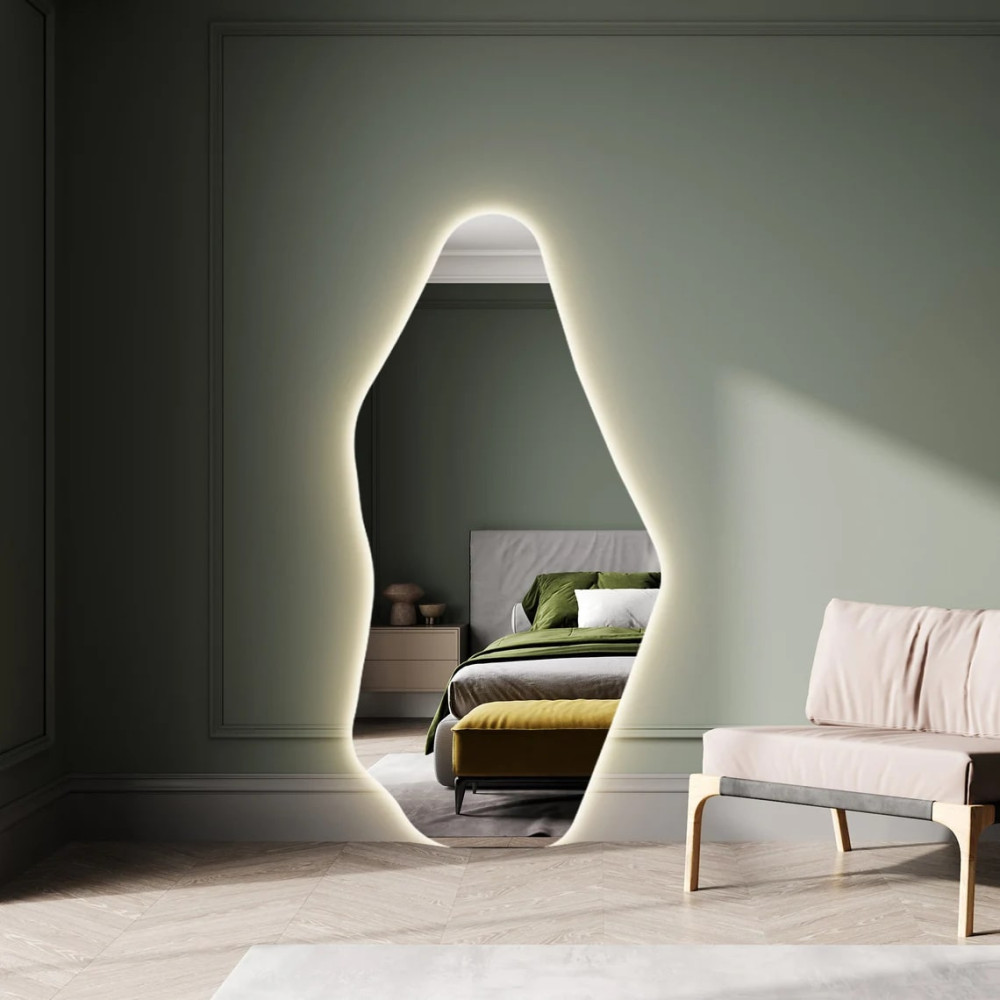 Большое асимметричное зеркало нестандартной формы в полный рост с тыльной фоновой подсветкой E003