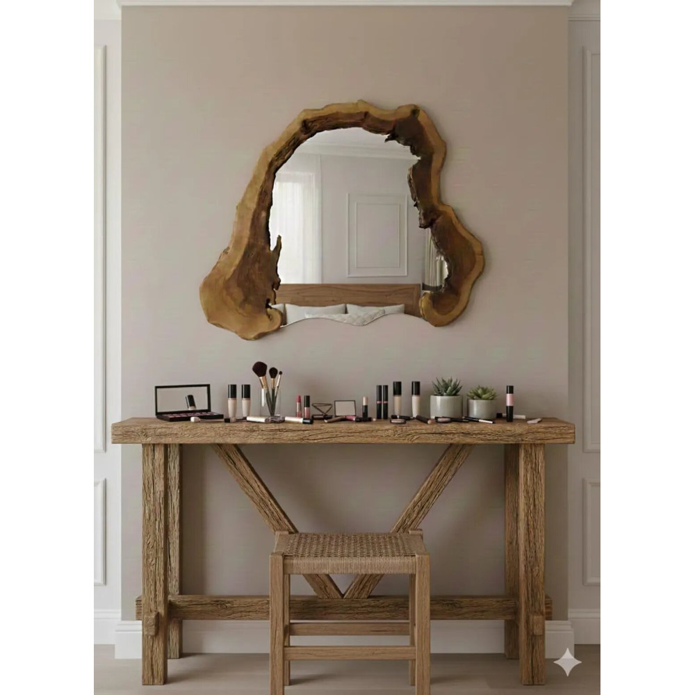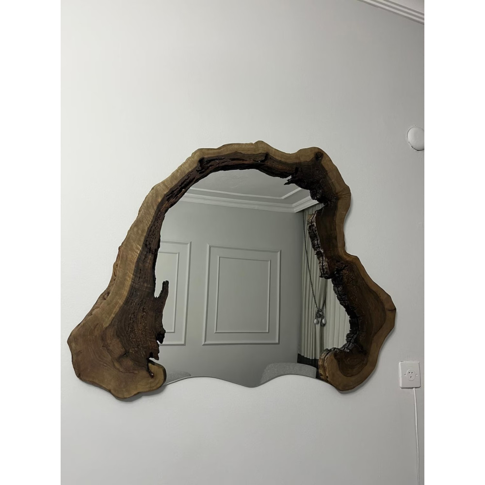 Зеркало неправильной формы в декоративной раме из слэба массива дерева MS005