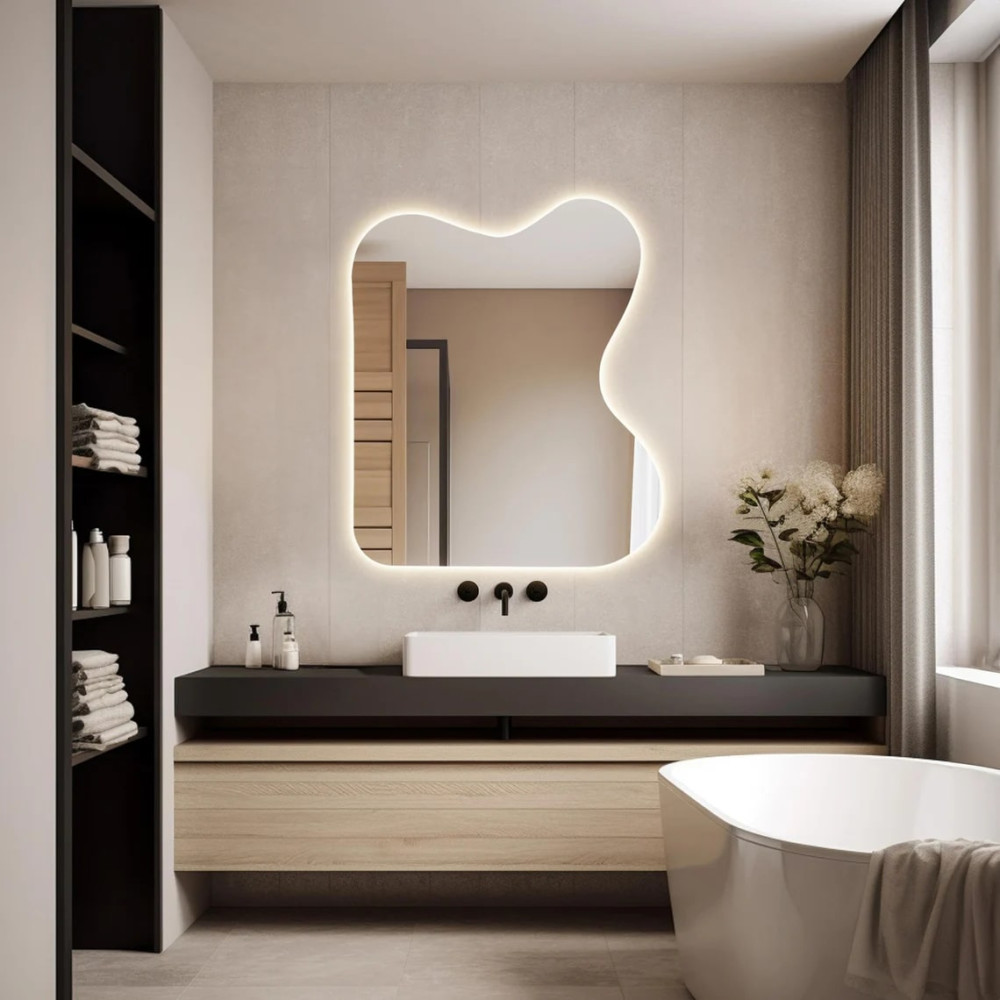 Зеркало неправильной органической формы с задней парящей подсветкой E098
