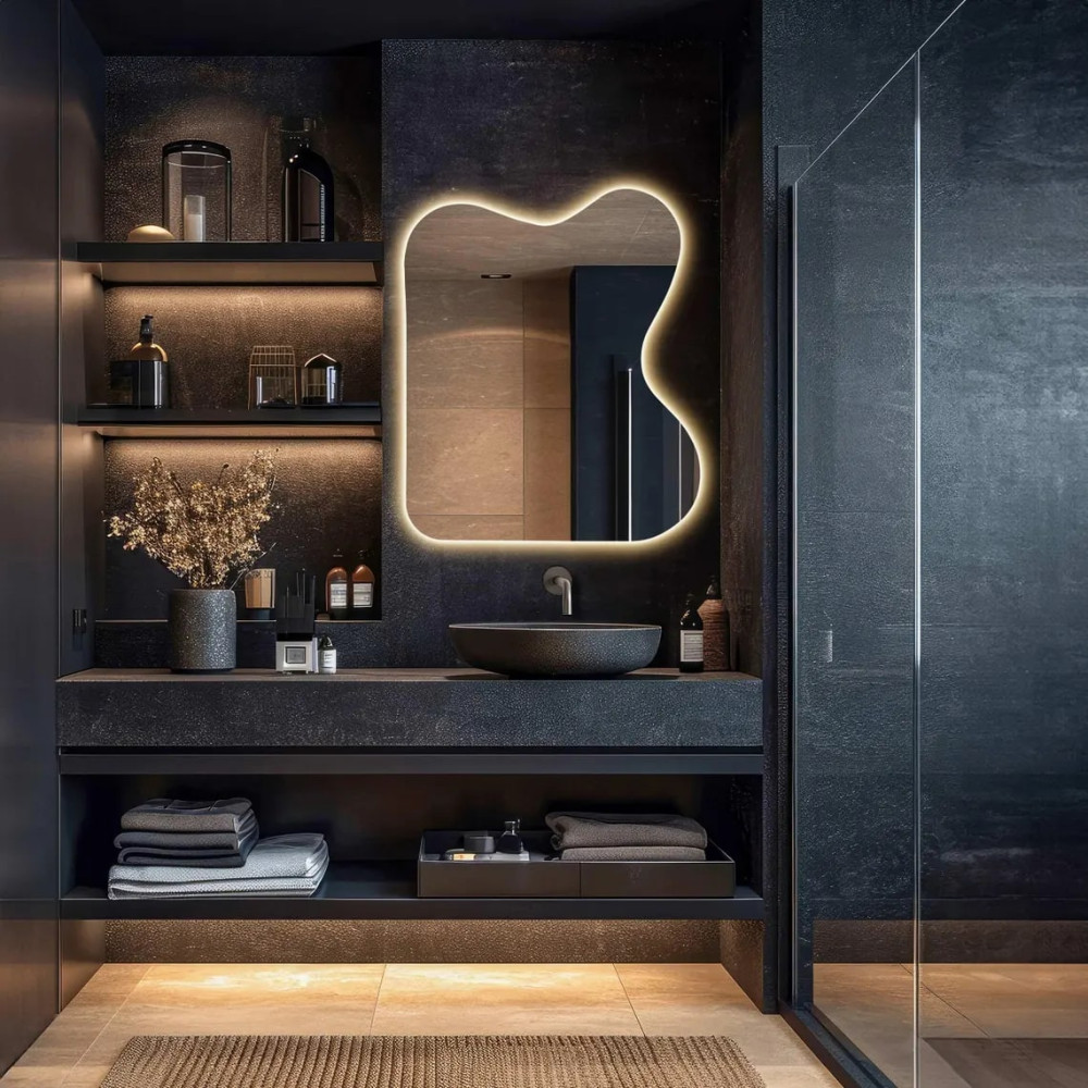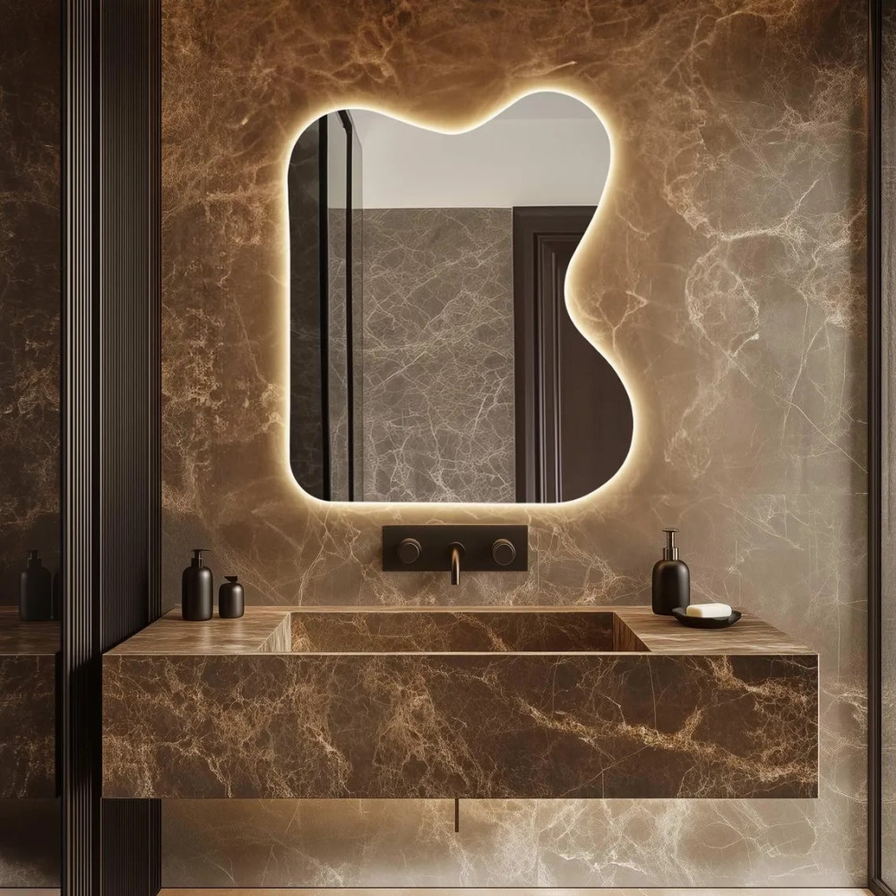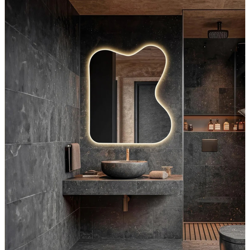 Зеркало E098 — дизайнерское зеркало неправильной органической формы с задней парящей подсветкой