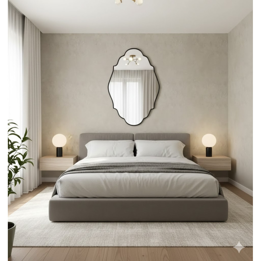 Зеркало «Лорена» в чёрной фигурной раме — это выразительная деталь для современных интерьеров с контрастом и характером. Чёрная фигурная рама подчёркивает графичность, глубину и стиль, превращая зеркало в мощный акцентный элемент.