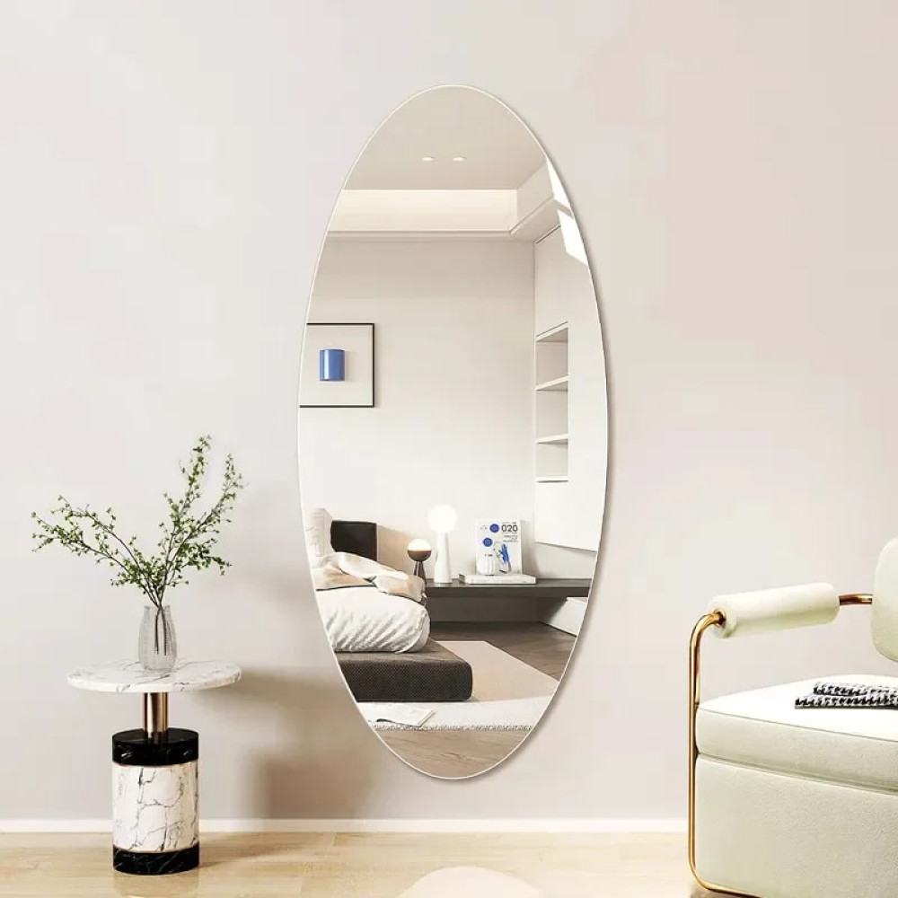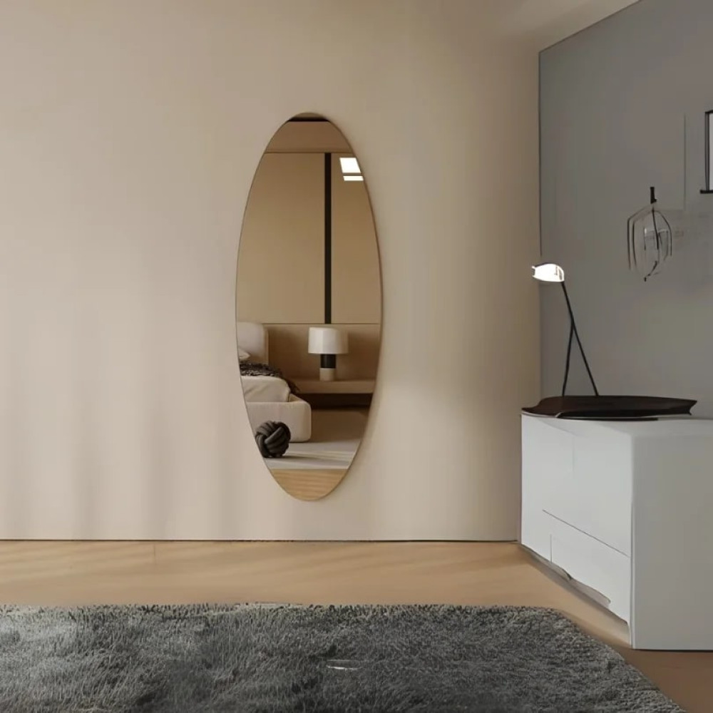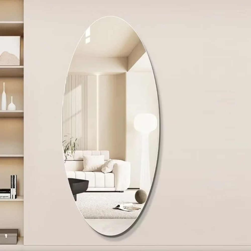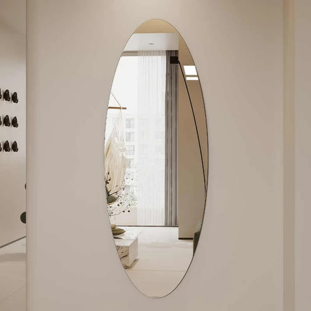 Создайте атмосферу простоты и утончённости с овальным зеркалом без рамы и подсветки. Минималистичный дизайн подчеркивает чистоту линий и позволяет зеркалу легко вписаться в любой интерьер — от скандинавского до современного. Большое зеркало визуально увеличивает пространство и делает его светлее.
