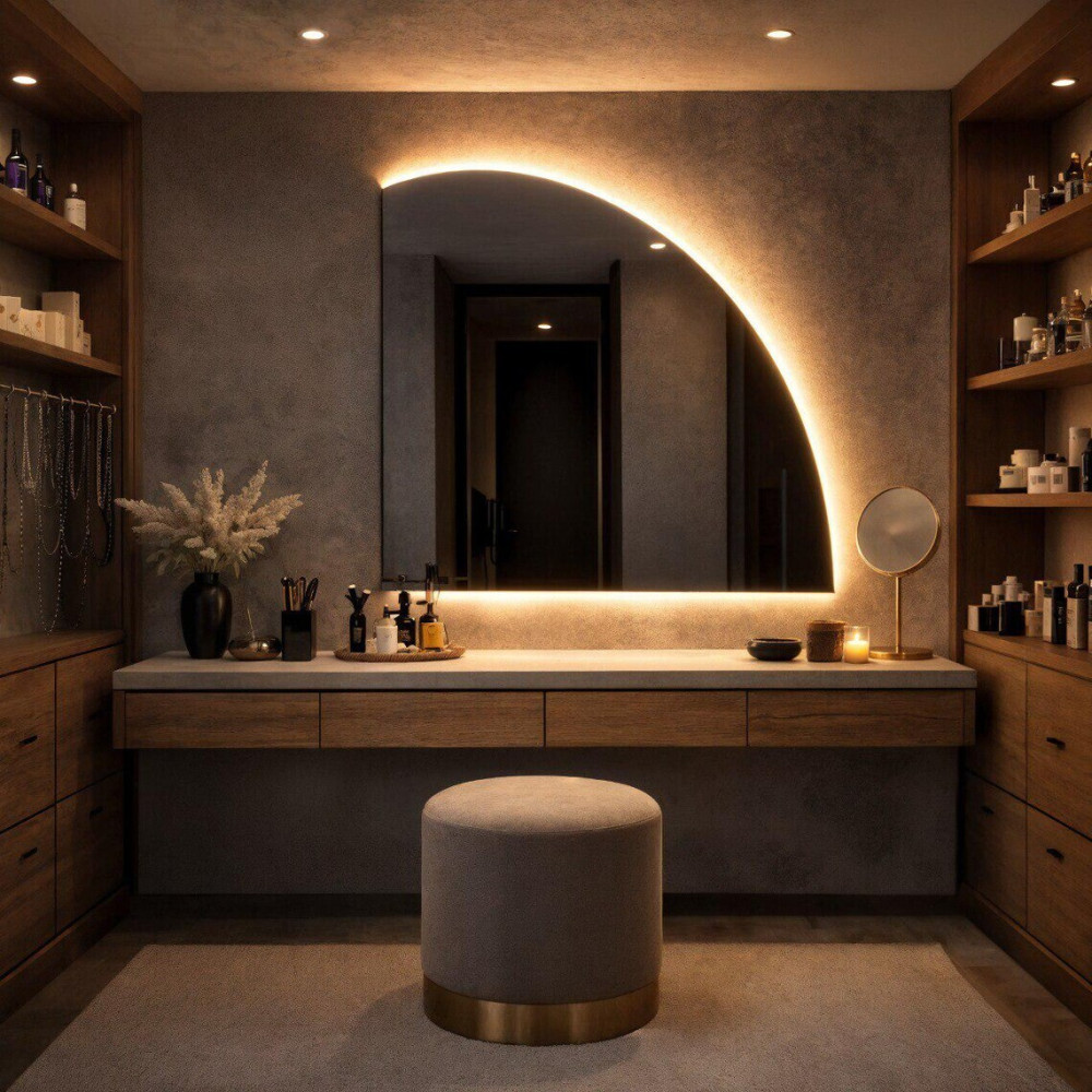 Для профессионального макияжа рекомендуем использовать зеркала с лампочками или зеркала с фронтальными пескоструйными световыми полосами с усиленной яркостью, нейтральным дневным светом и закрытым свечением(сзади зеркала свет не падает на стену).