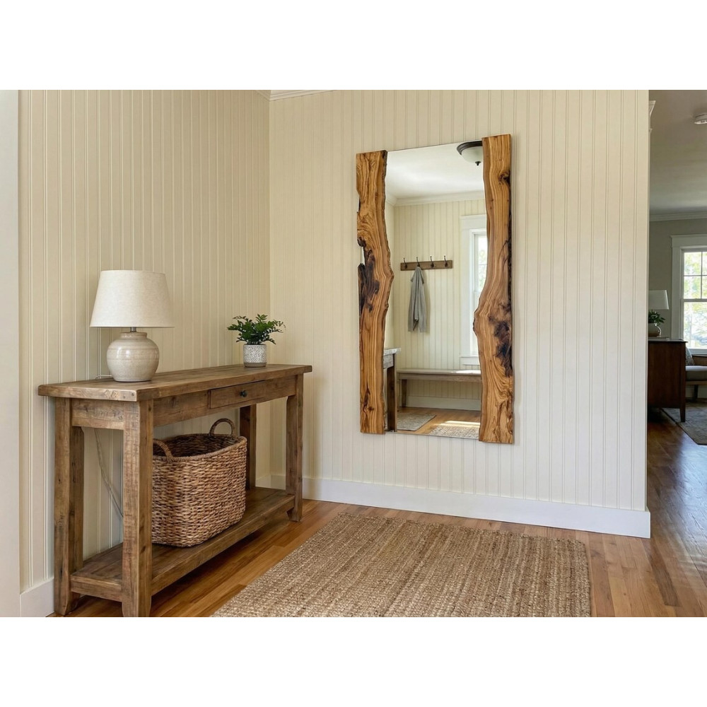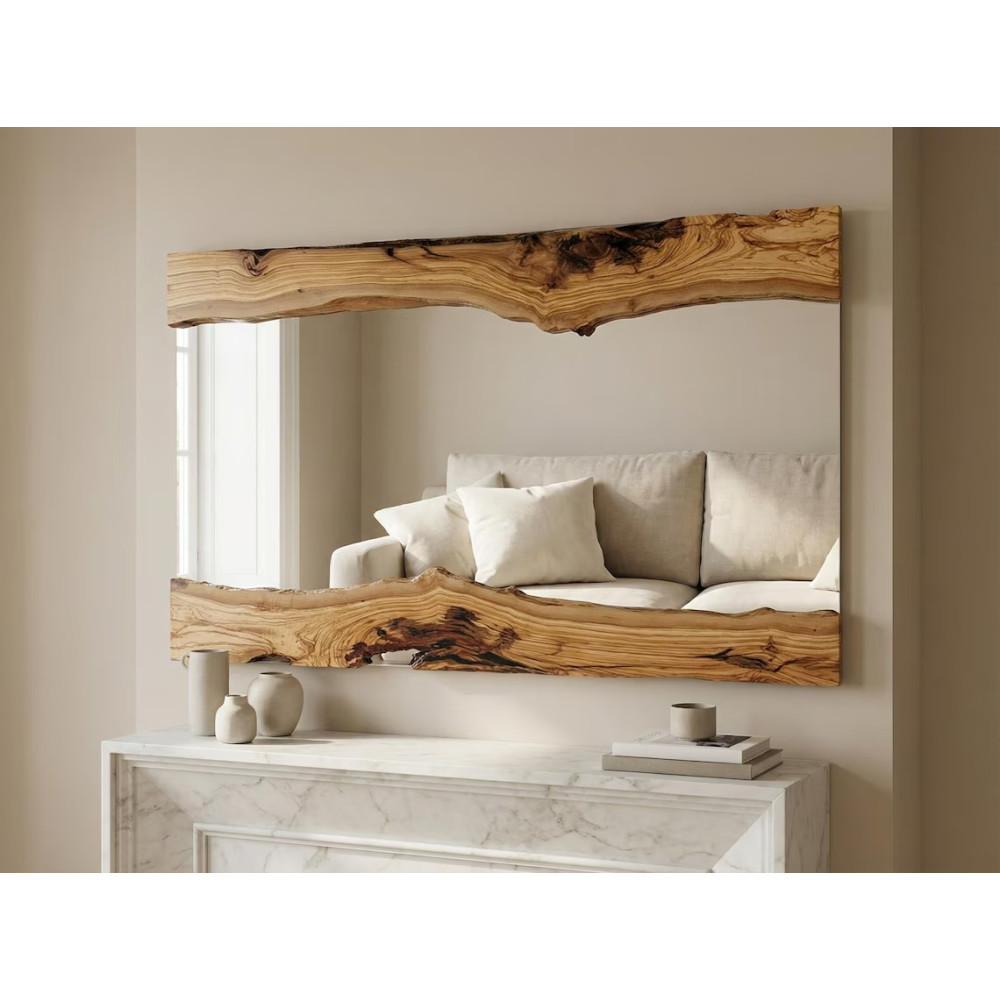• Цельный массив: Мы подбираем лучшие слэбы с выразительной текстурой. Каждое зеркало сохраняет естественные изгибы дерева, его узлы и природный рельеф.