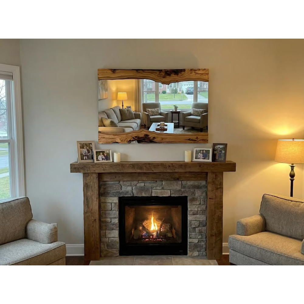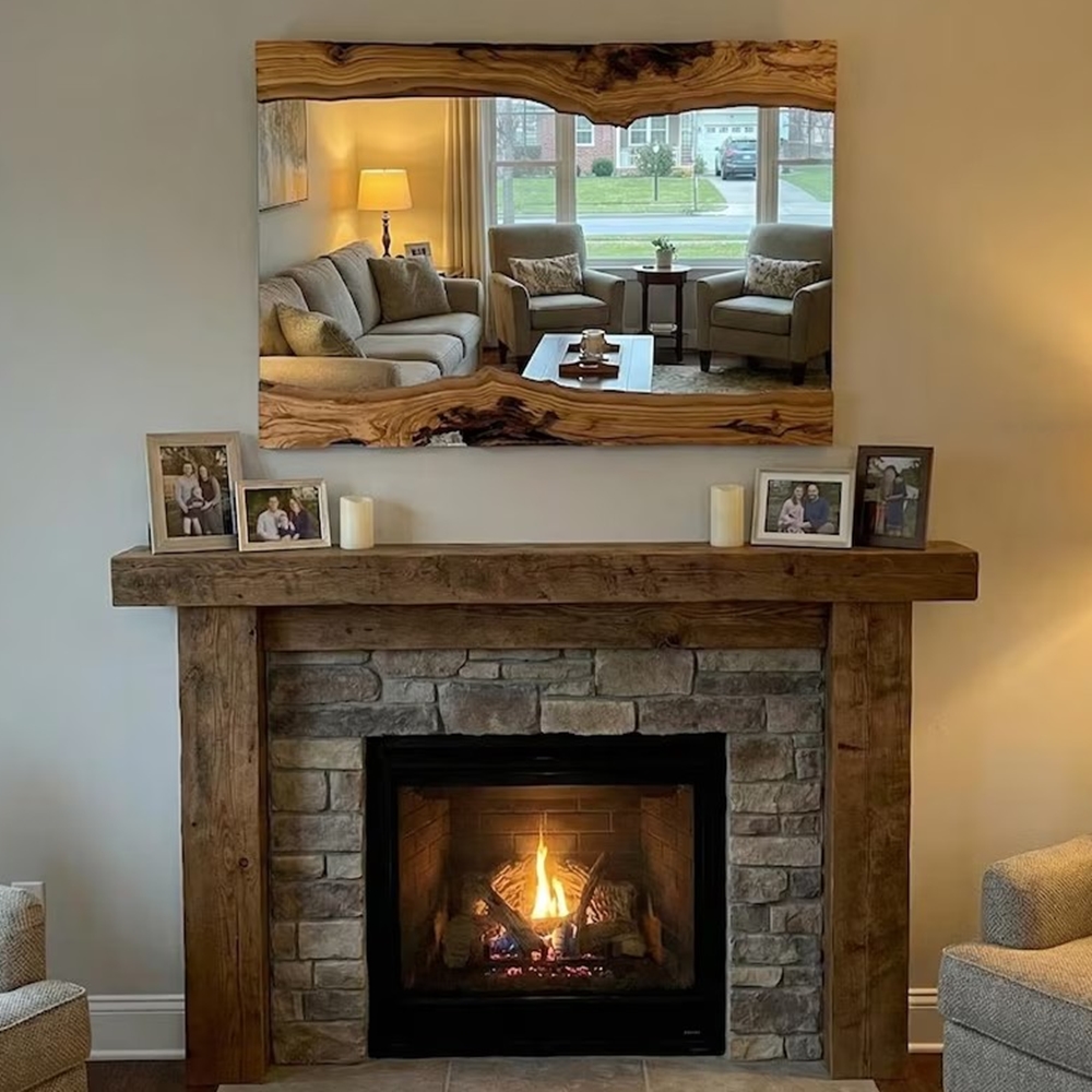 • Эстетика несовершенства: Трещины и полости, созданные временем, могут быть заполнены прозрачной или цветной полимерной смолой, что превращает раму в ювелирное украшение интерьера.