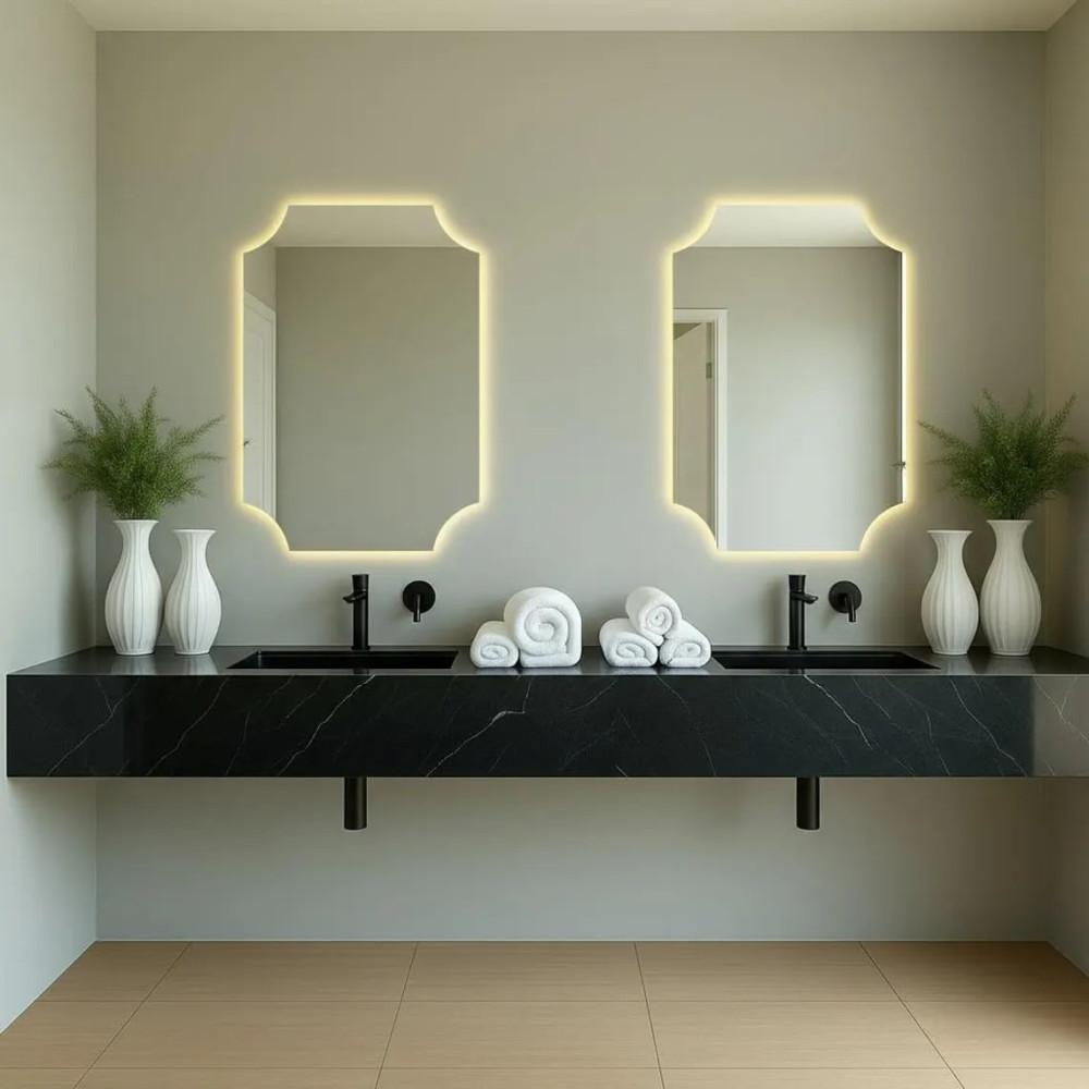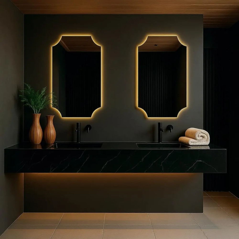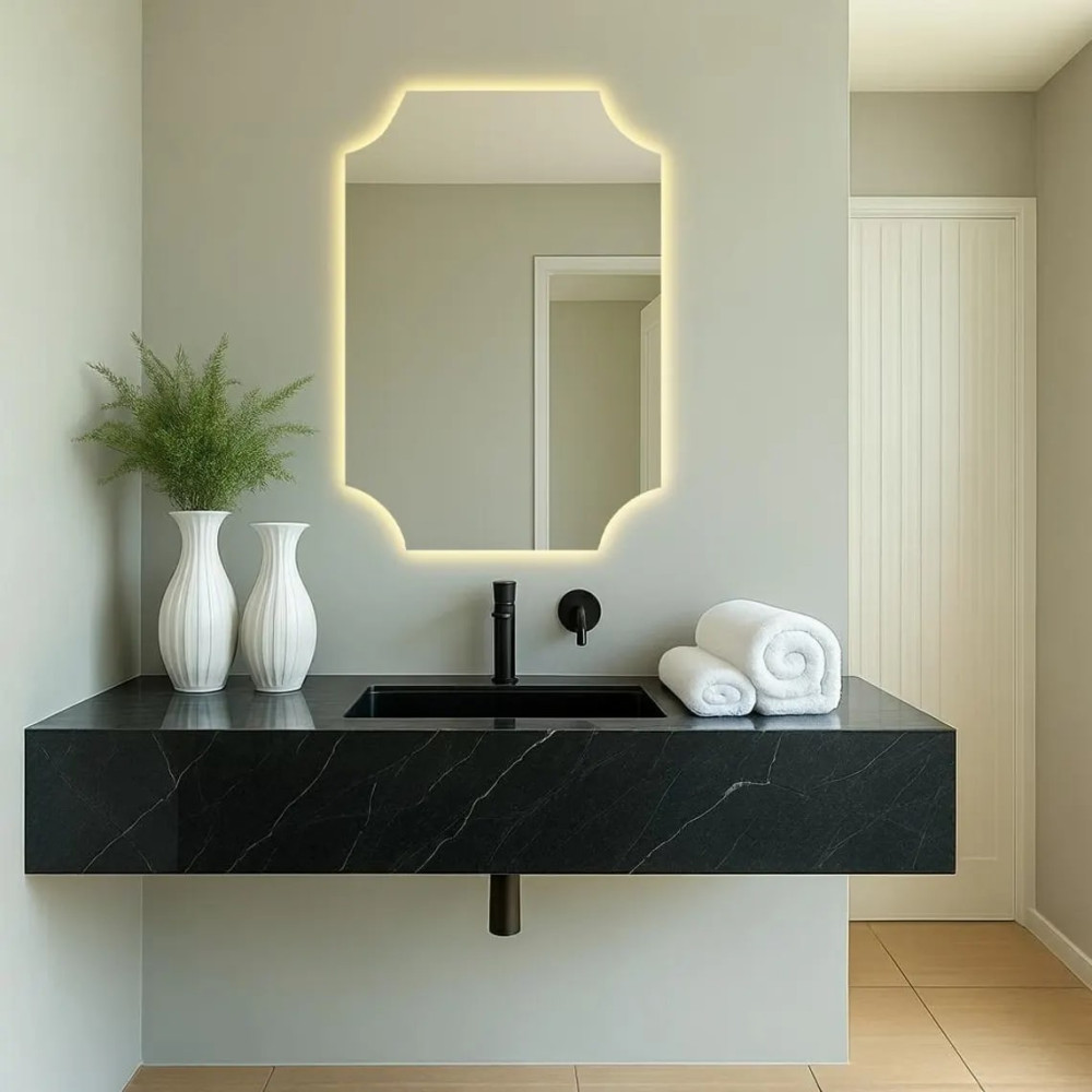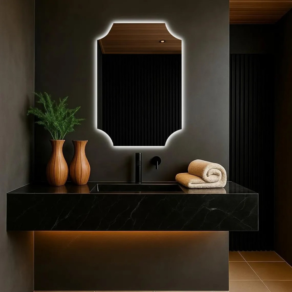 Зеркало E052 — лаконичное и стильное решение для современного интерьера. Благодаря задней интерьерной LED-подсветке зеркало создаёт мягкое рассеянное свечение, которое подчёркивает форму, добавляет глубину пространству и создаёт эффект парения на стене.