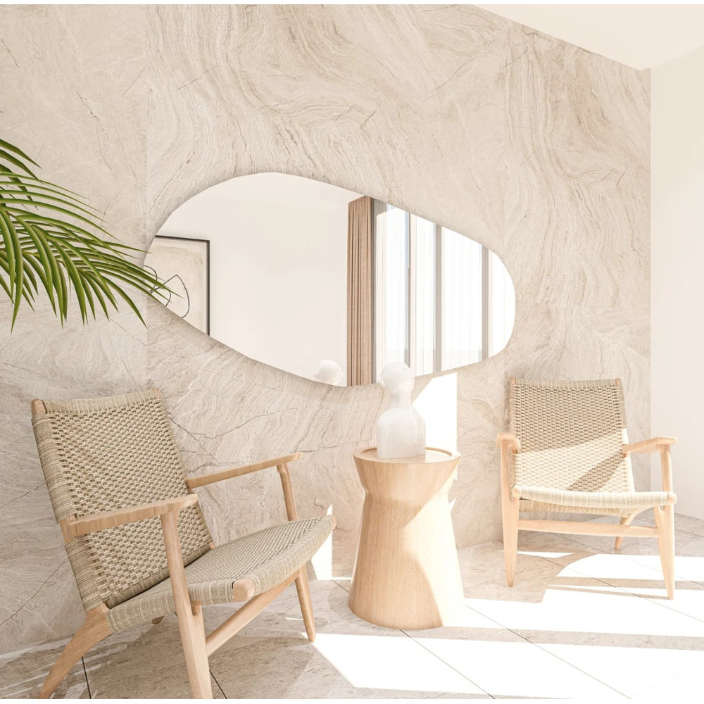 Зеркало Астро 001 — лаконичное и стильное решение для современного интерьера. Его асимметричная форма создаёт динамичный визуальный акцент, добавляя пространству лёгкость и индивидуальность. Отсутствие рамы подчёркивает чистоту линий и минимализм дизайна.