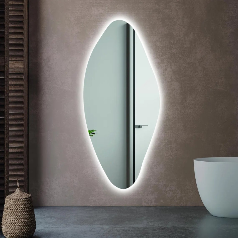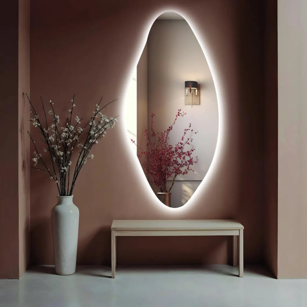Фигурное большое настенное зеркало в полный рост с LED-подсветкой Кастин