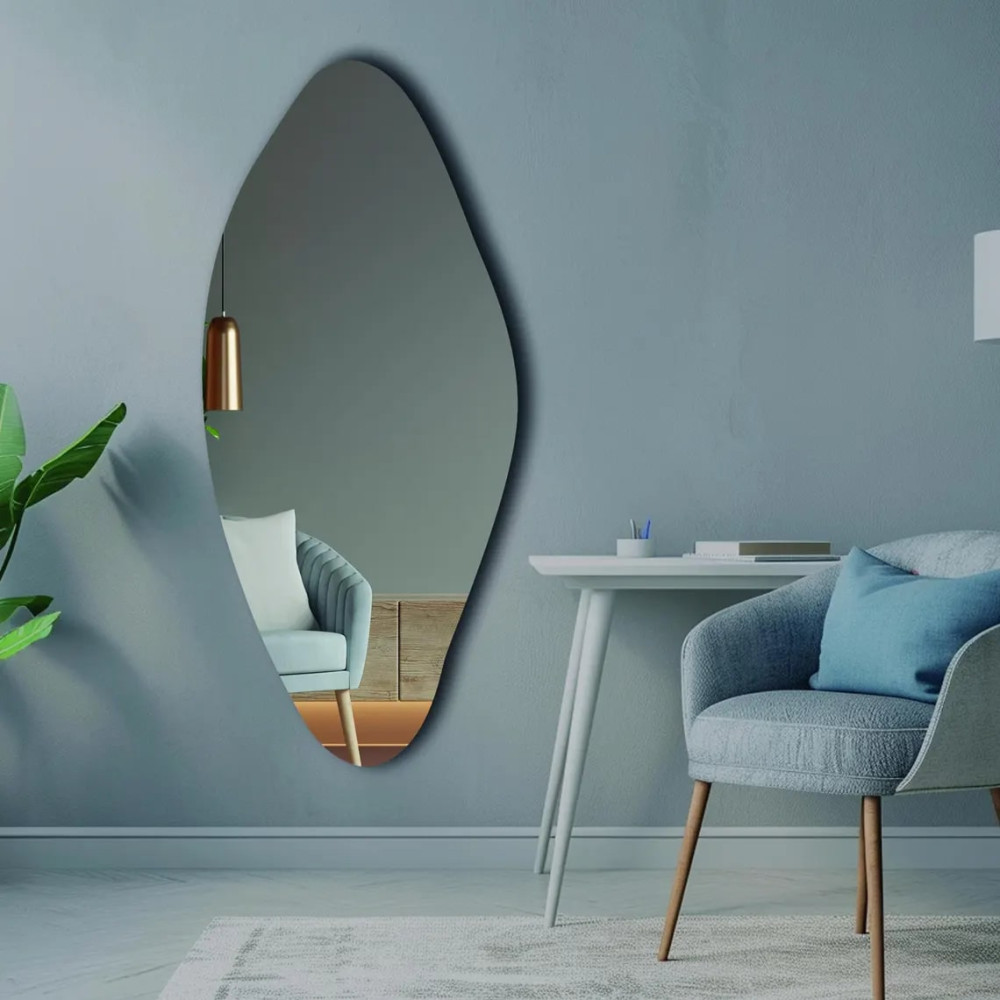 Фигурное асимметричное зеркало с эмбилайт подсветкой Кастин