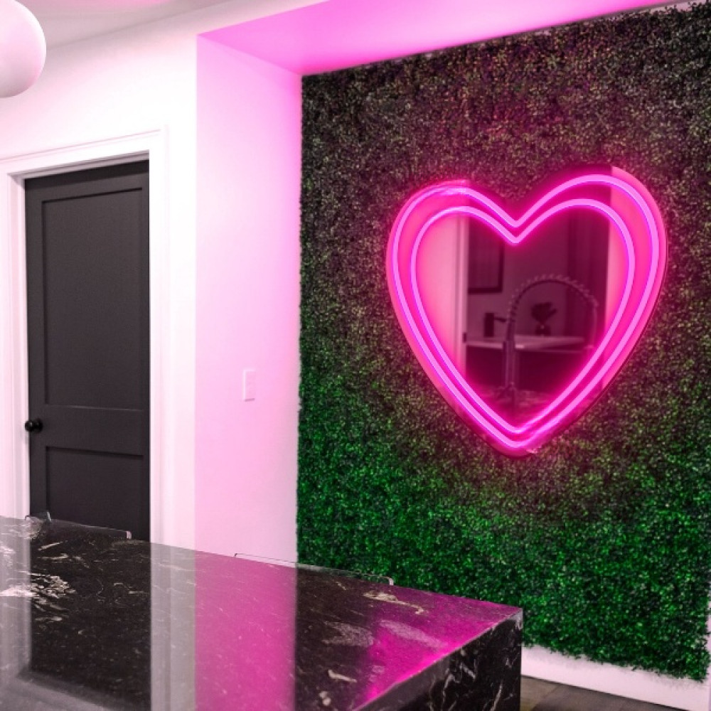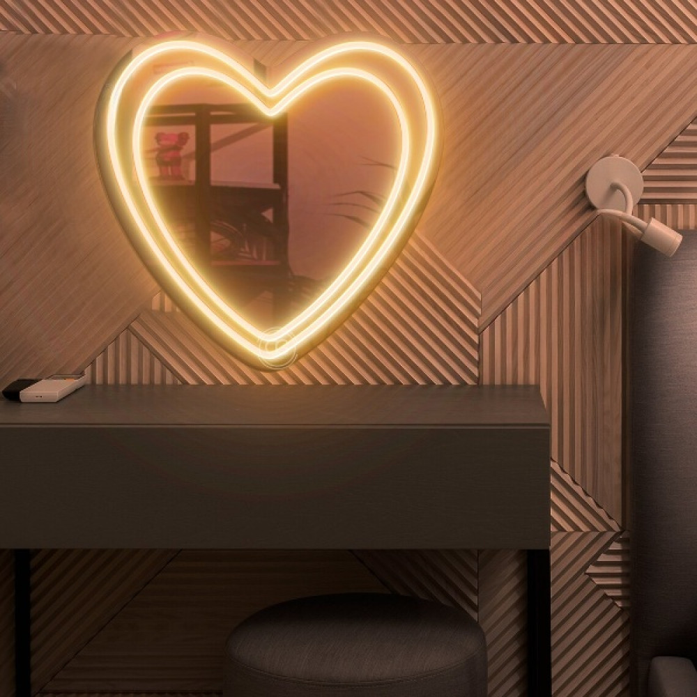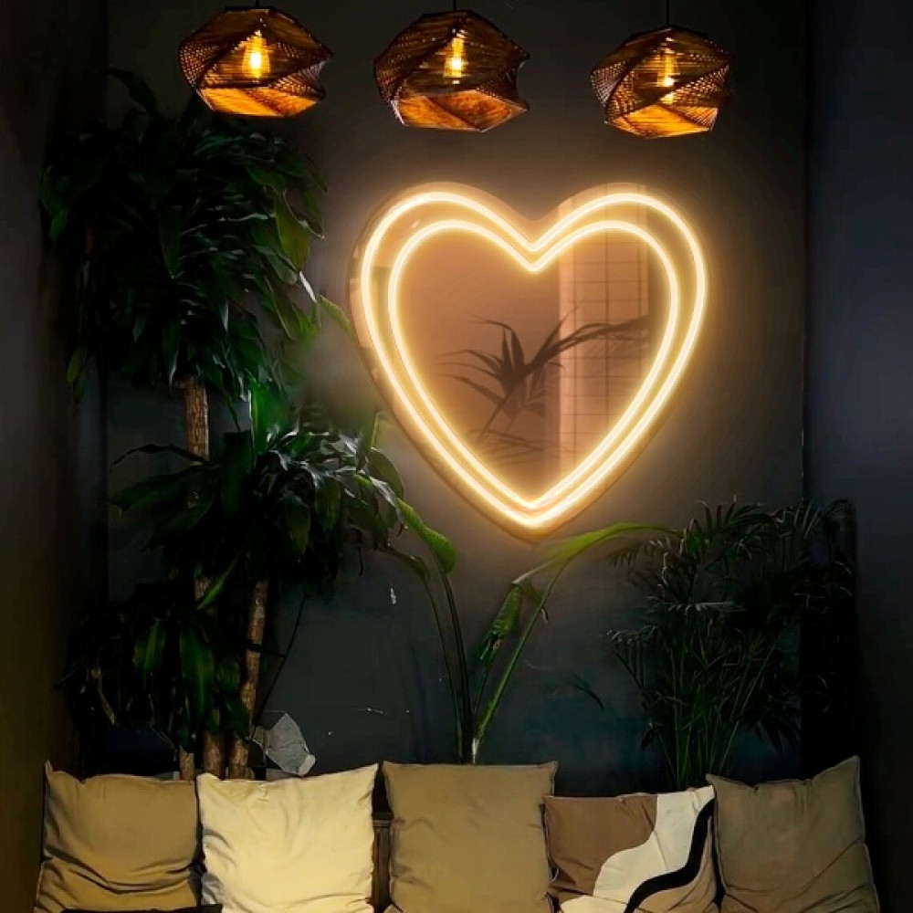 Зеркало Дабл Лайн — стильный и романтичный элемент интерьера, созданный для тех, кто ценит атмосферу, эстетику и мягкий свет. Его изящная форма сердца делает пространство уютным и выразительным, а фронтальная LED-подсветка обеспечивает идеальную подсветку лица, не создавая теней и бликов.