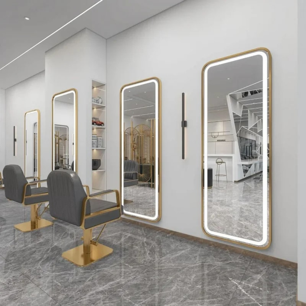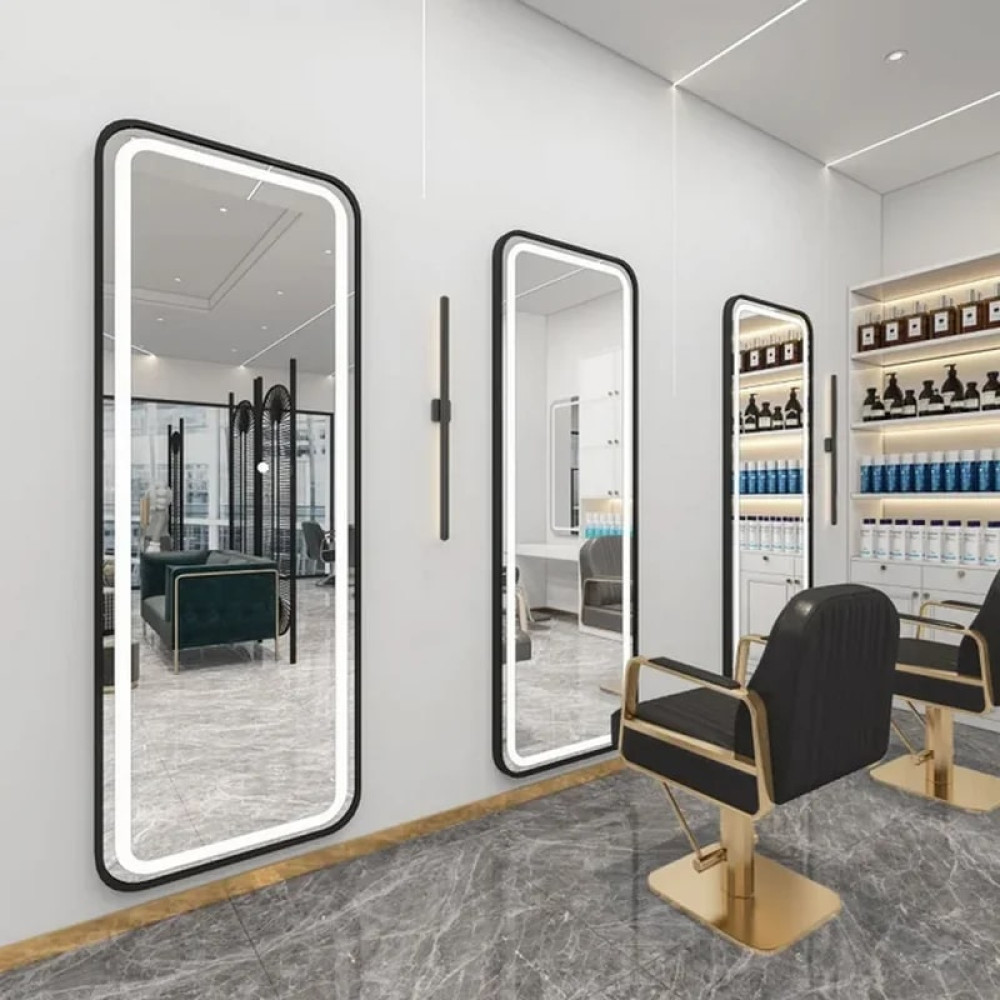 Элегантное зеркало со скруглёнными углами и фронтальной LED-подсветкой идеально подходит для салонов красоты, барбершопов и стильных интерьеров. Мягкое равномерное освещение обеспечивает комфортную работу мастера и добавляет уютную атмосферу для клиента.