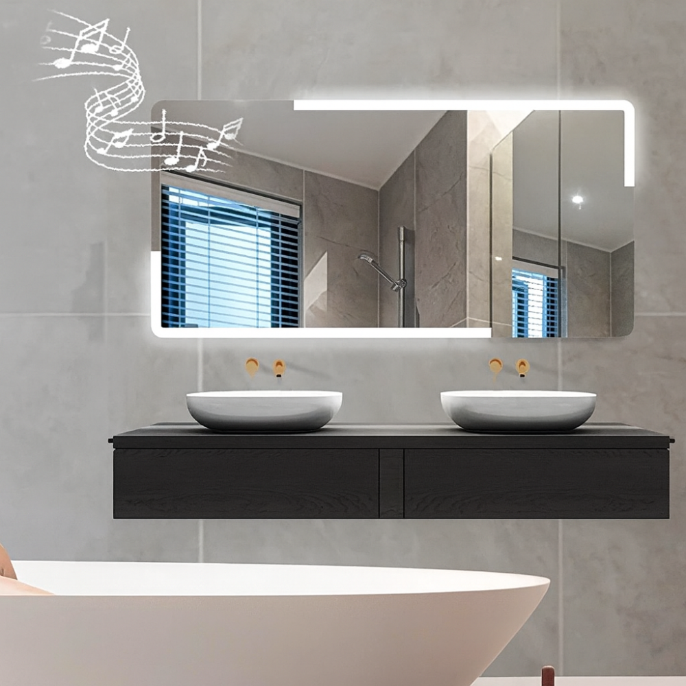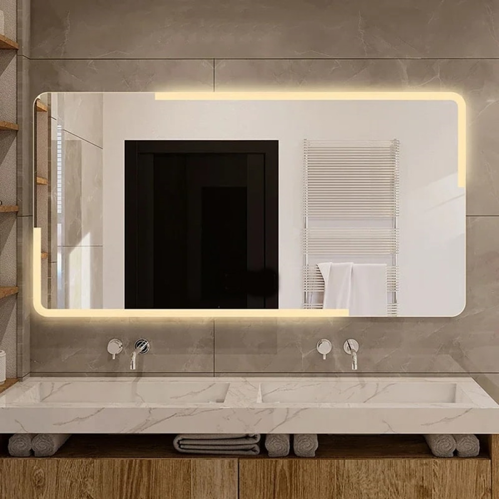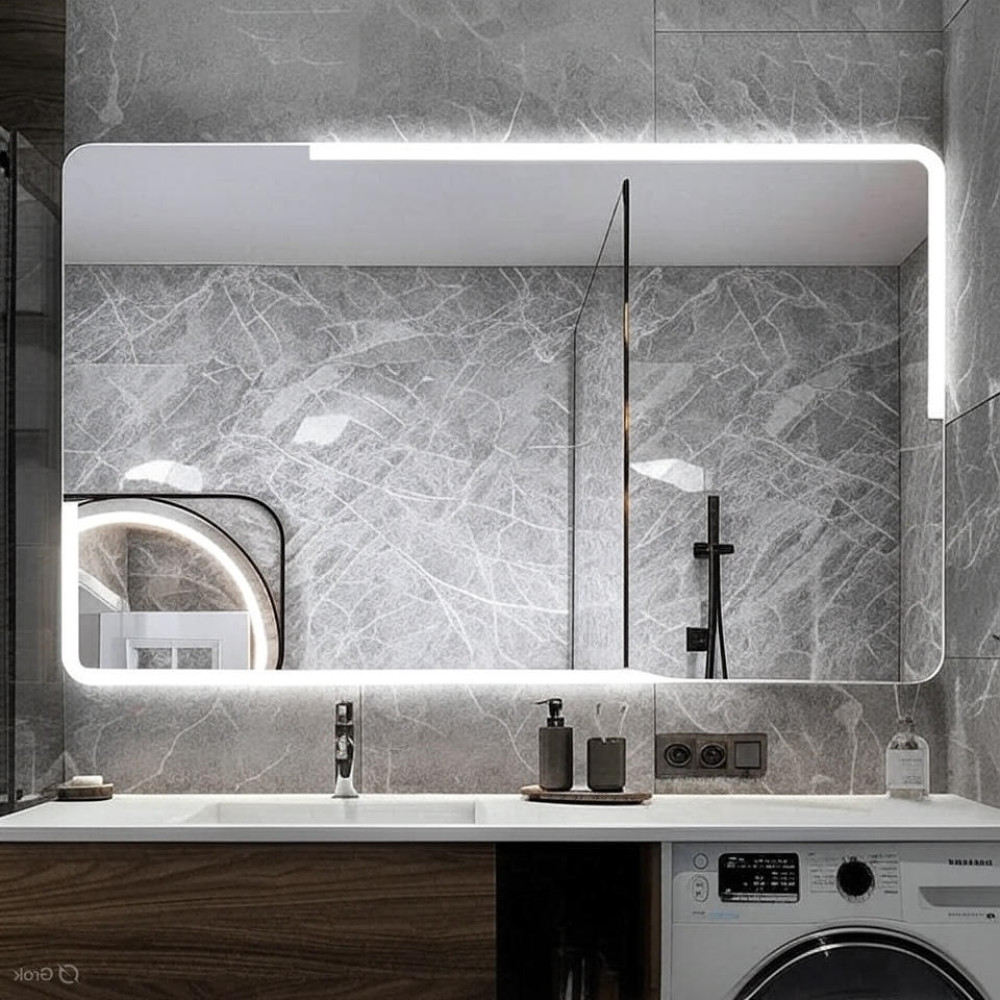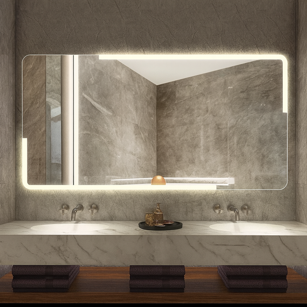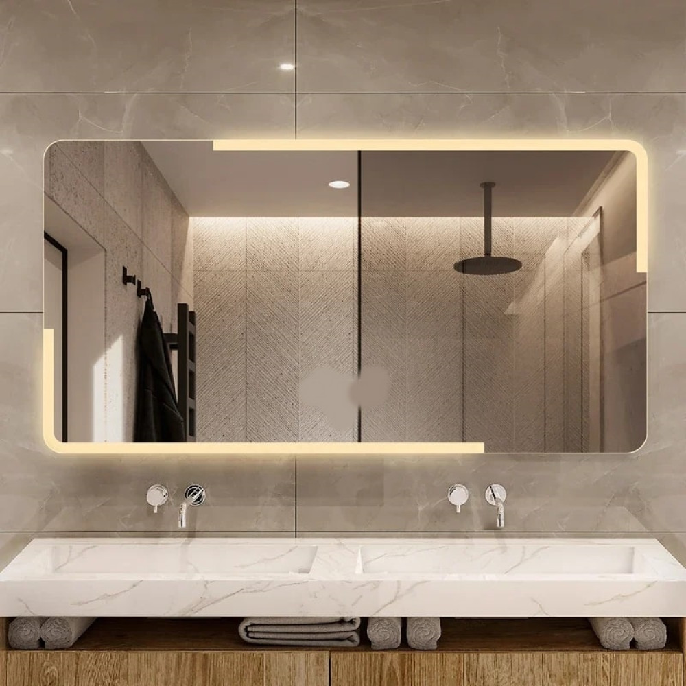 Для профессионального макияжа рекомендуем использовать зеркала с лампочками или зеркала с фронтальными пескоструйными световыми полосами с усиленной яркостью, нейтральным дневным светом и закрытым свечением(сзади зеркала свет не падает на стену).