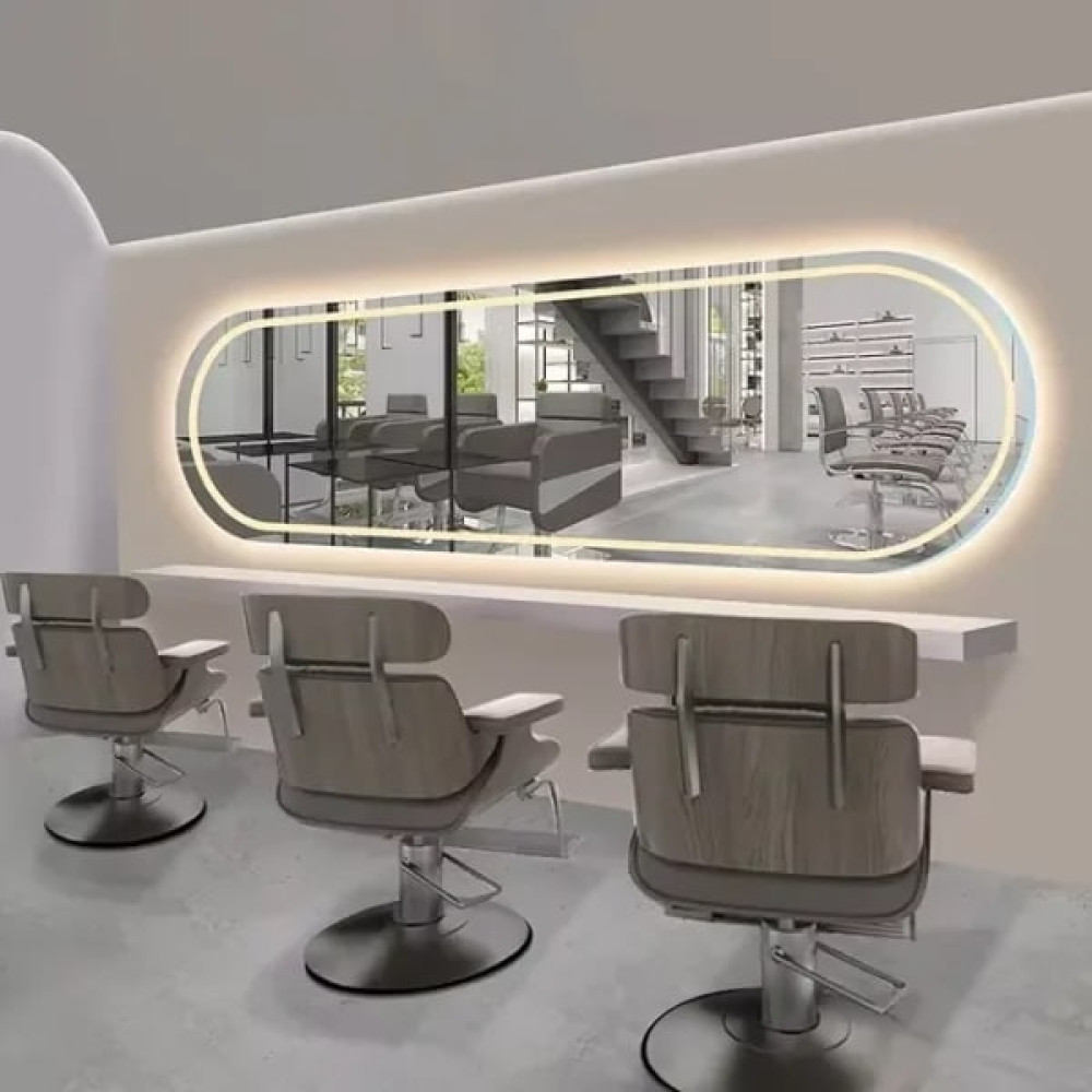Для профессионального макияжа рекомендуем использовать зеркала с лампочками или зеркала с фронтальными пескоструйными световыми полосами с усиленной яркостью, нейтральным дневным светом и закрытым свечением(сзади зеркала свет не падает на стену).