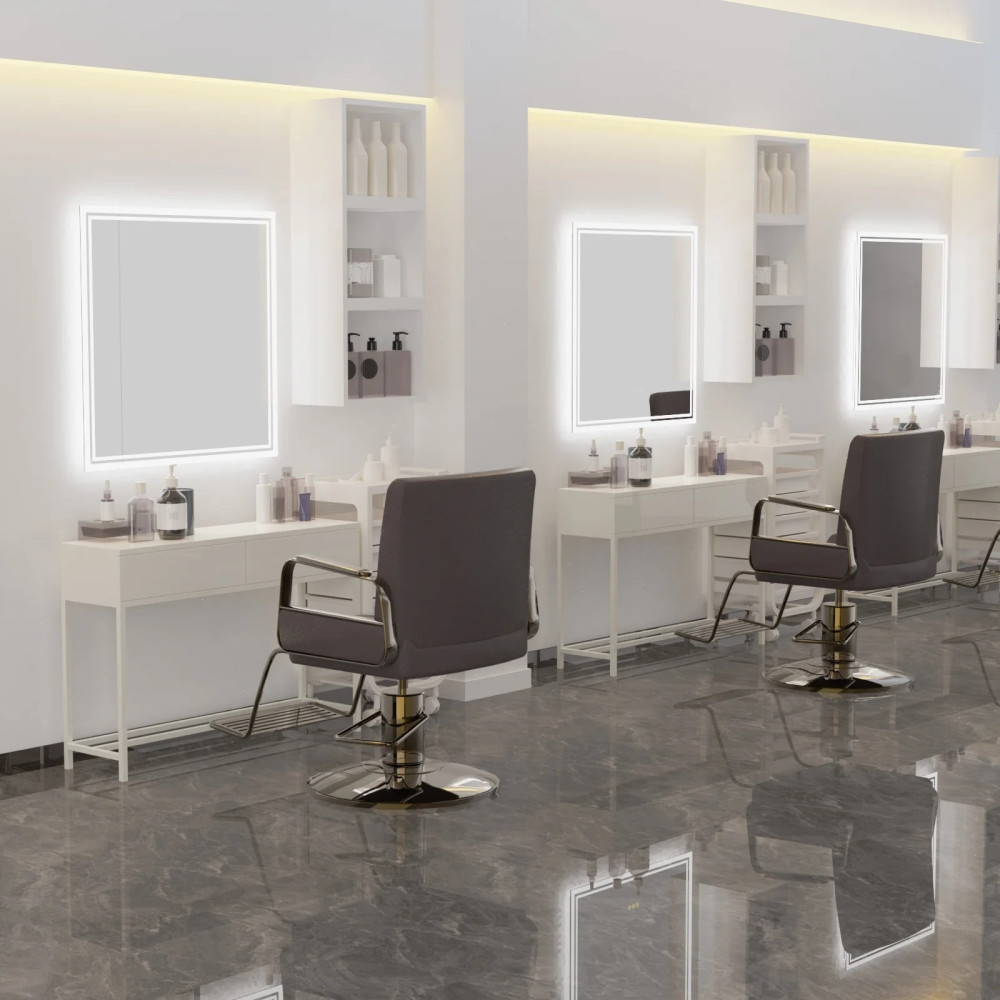 Для профессионального макияжа рекомендуем использовать зеркала с лампочками или зеркала с фронтальными пескоструйными световыми полосами с усиленной яркостью, нейтральным дневным светом и закрытым свечением(сзади зеркала свет не падает на стену).