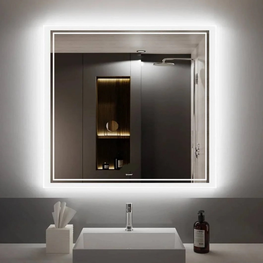 Зеркало «Торонто» — современное квадратное зеркало с элегантным дизайном и двойной системой освещения.