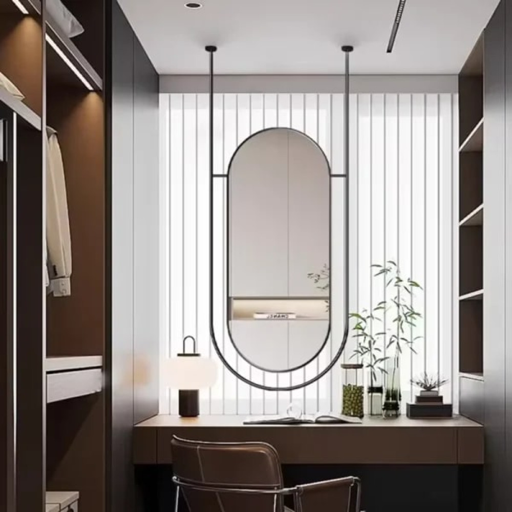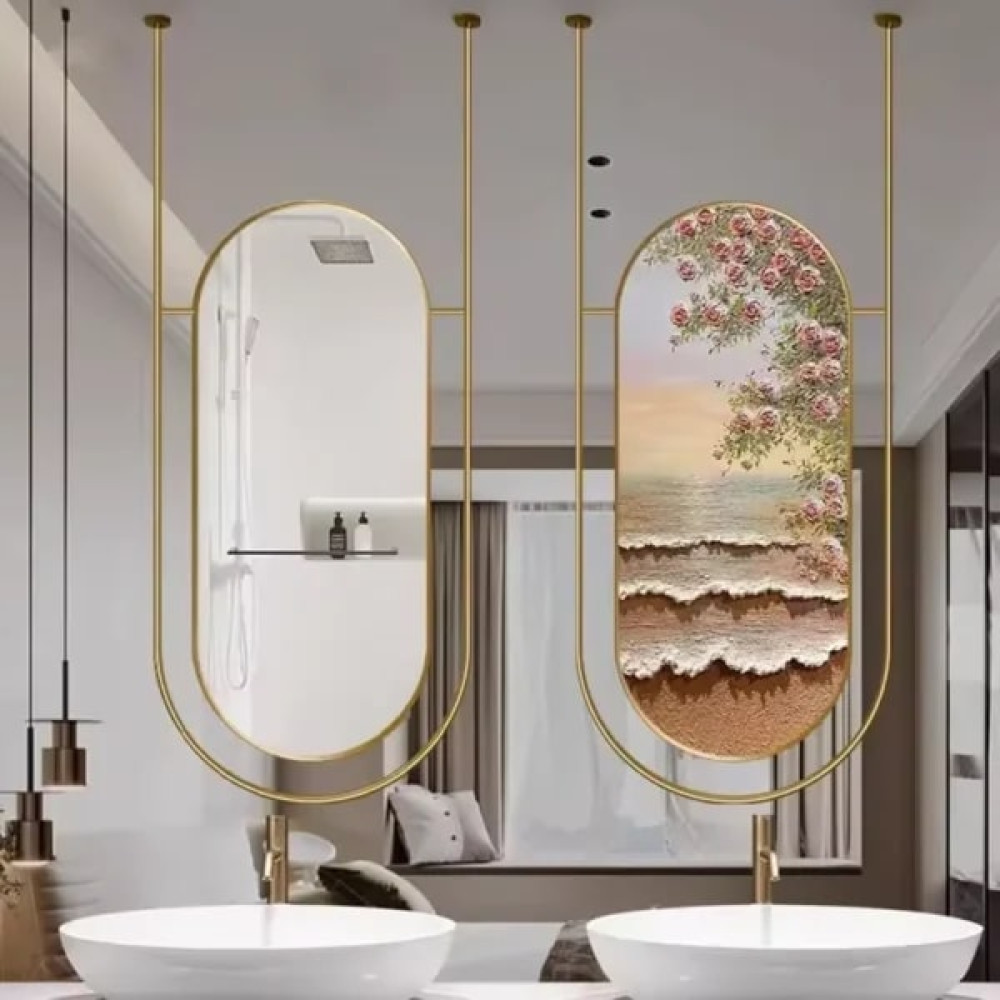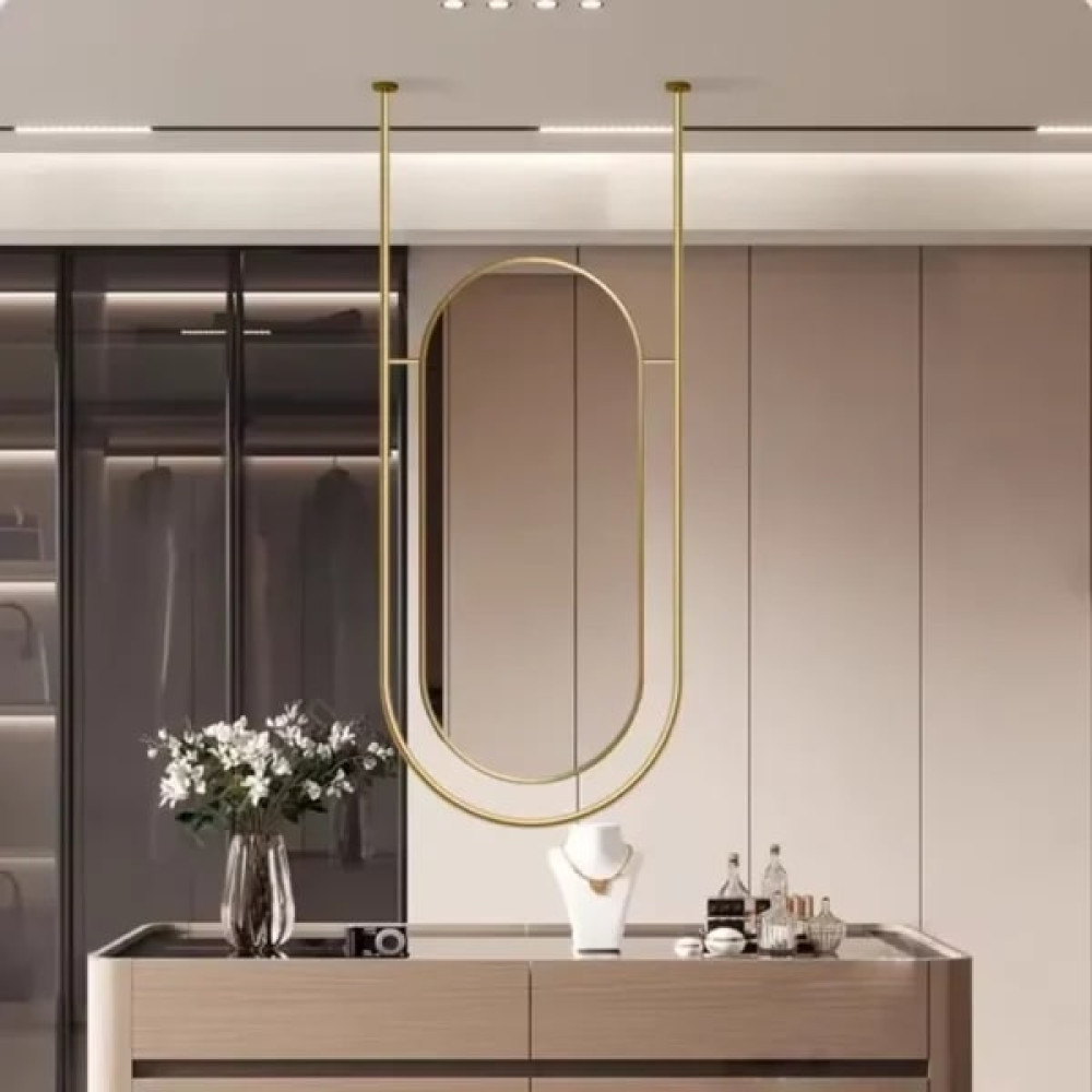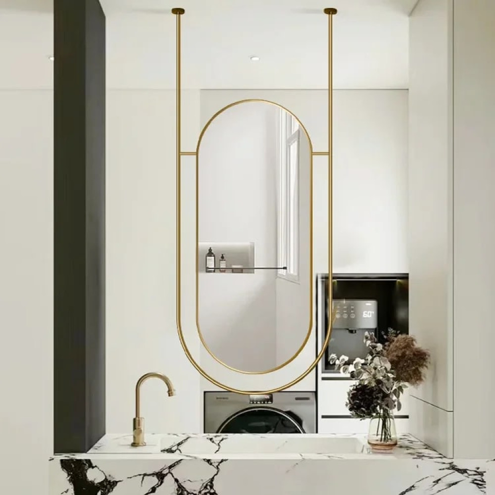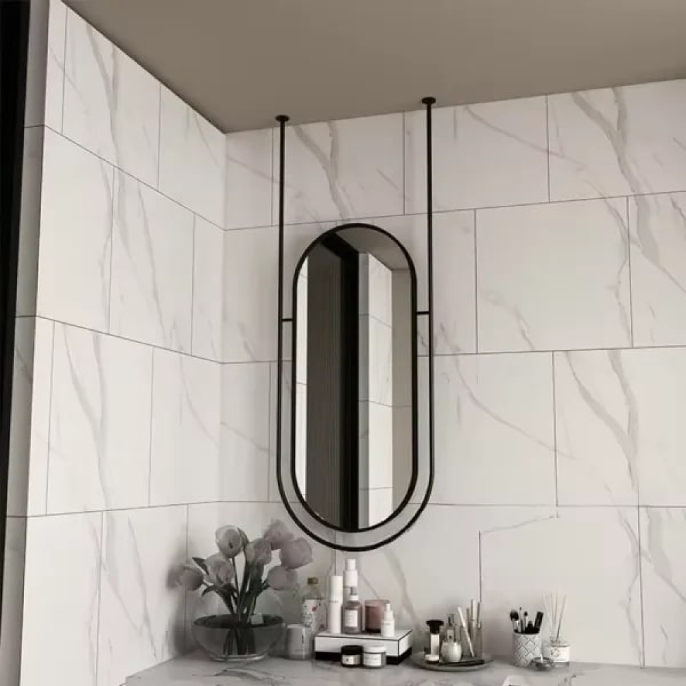 Зеркало овальной формы с креплением к потолку на две штанги Викторио