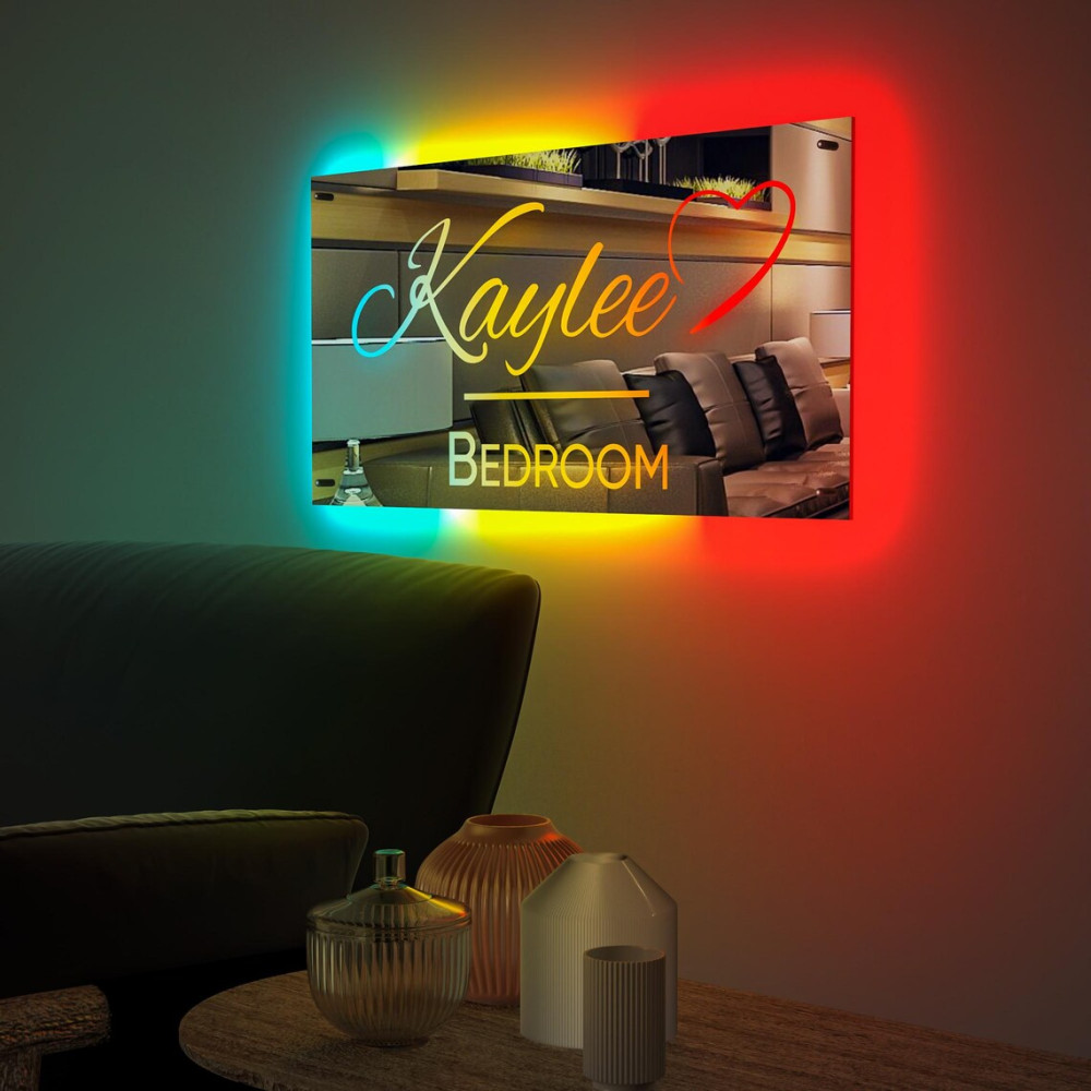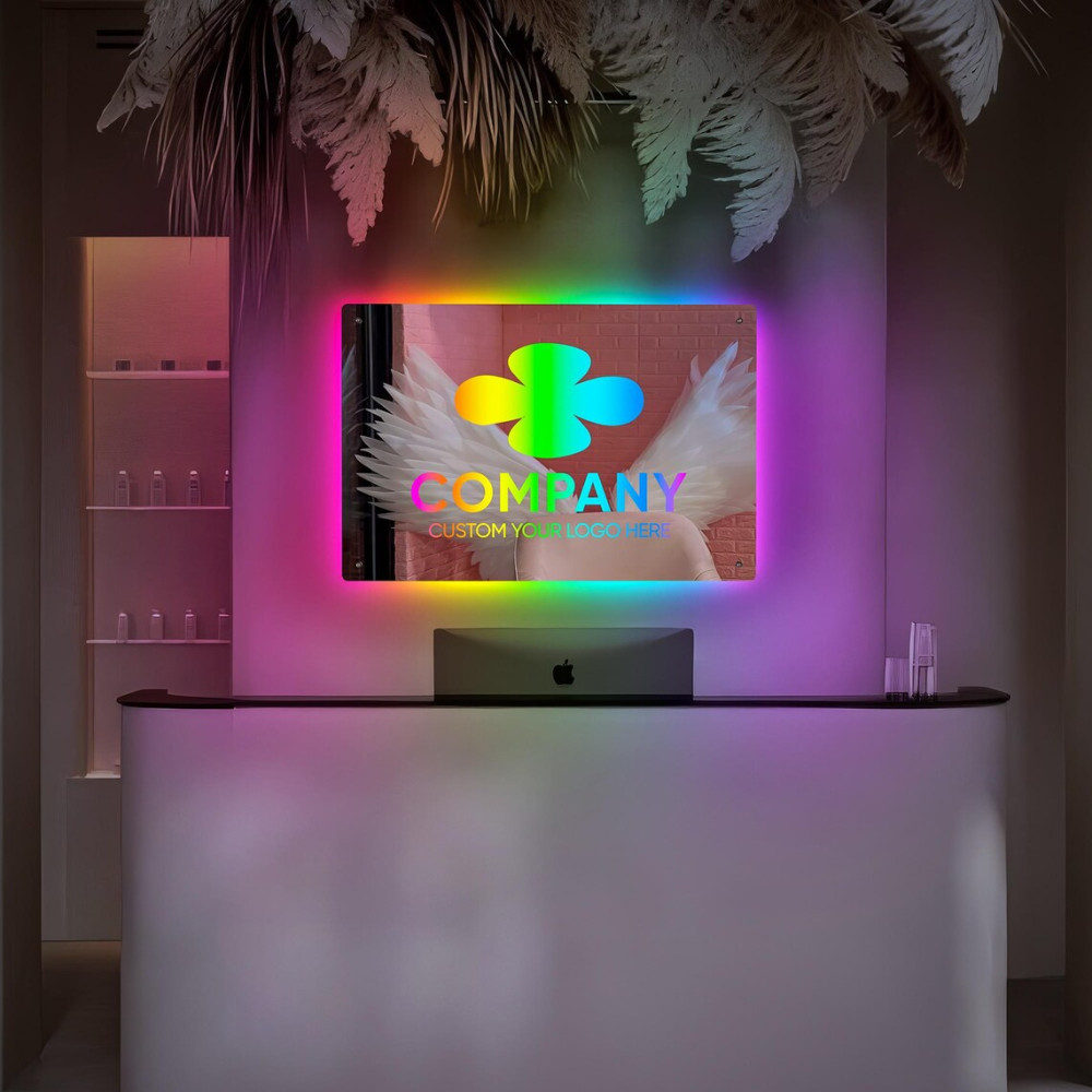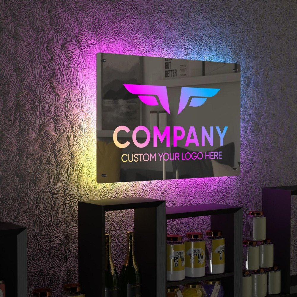 Зеркало с логотипом компании с неоновой RGB подсветкой E071